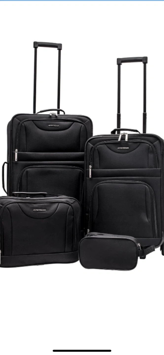 Selling a Jetstream 4-piece luggage set in black. This set includes various sizes to accommodate all your travel needs. Perfect for any trip!