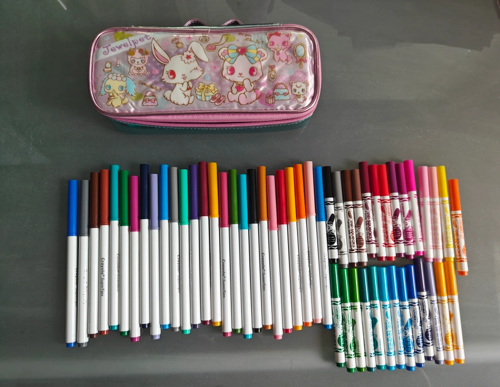 Cute Jewelpet pencil case filled with Crayola Supertips markers! Great for any young artist who loves to draw and colour. The pencil case is in good condition and ready for a new home. Markers are brand new, got as a gift from my friend last year. You can buy the pencil case itself or select a few markers or mix and match with other Stationery supplies like HB Pencils and mechanical pencils for a better bundle. Please message me if you're interested in mix and matching items.