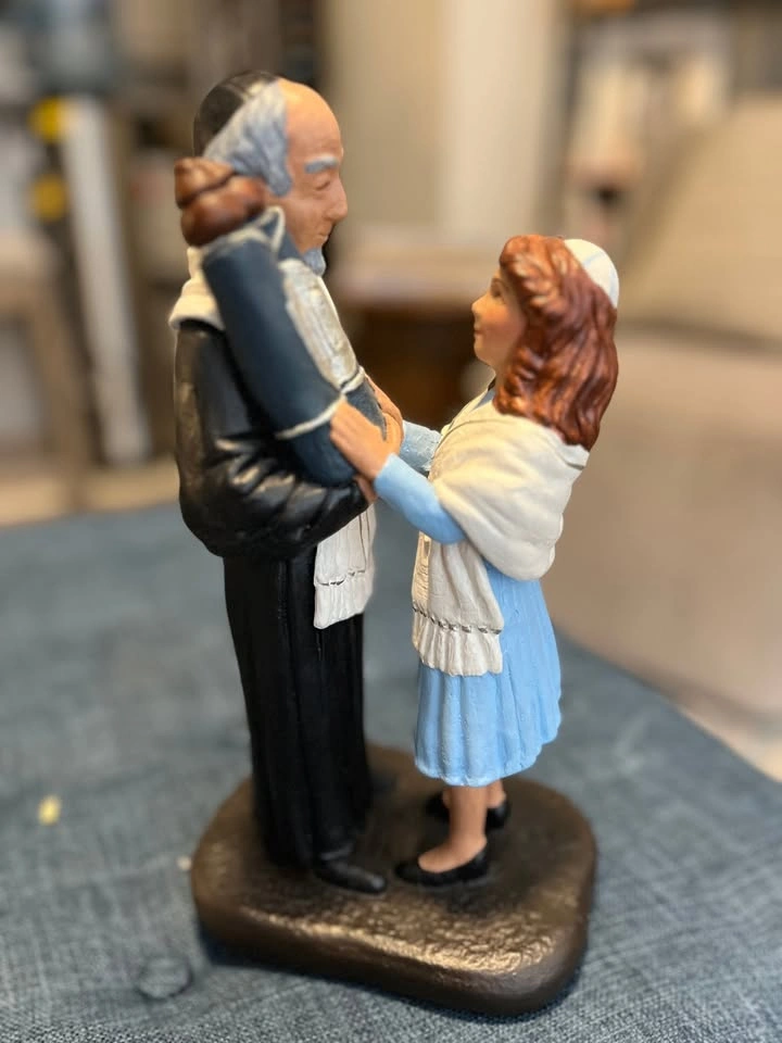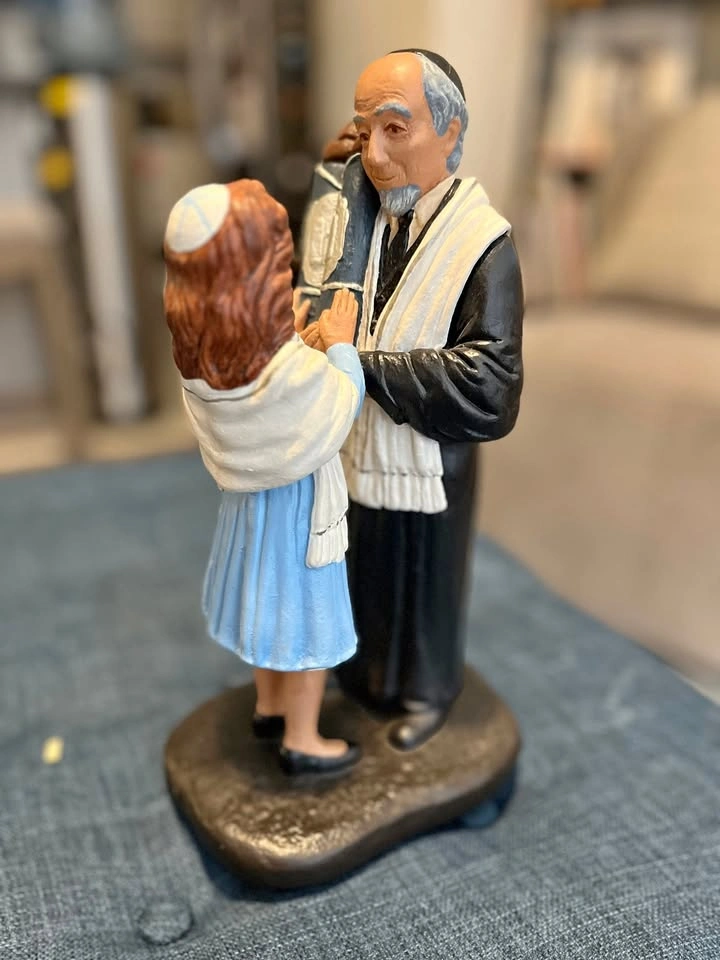 Selling a beautiful figurine depicting a Jewish grandfather and his granddaughter. The two are lovingly holding a Torah scroll, a powerful symbol of the passing of faith and tradition between generations. This piece is a wonderful representation of family, heritage, and the bond between generations. It's a perfect gift for: A Bar or Bat Mitzvah celebration A wedding or anniversary A holiday gift (Rosh Hashanah, Hanukkah, etc.) Anyone who collects Judaica or religious art The figurine is in excellent condition with no chips or cracks. It would make a meaningful addition to any home. Feel free to message me with any questions. Local pickup is preferred in Pickering.