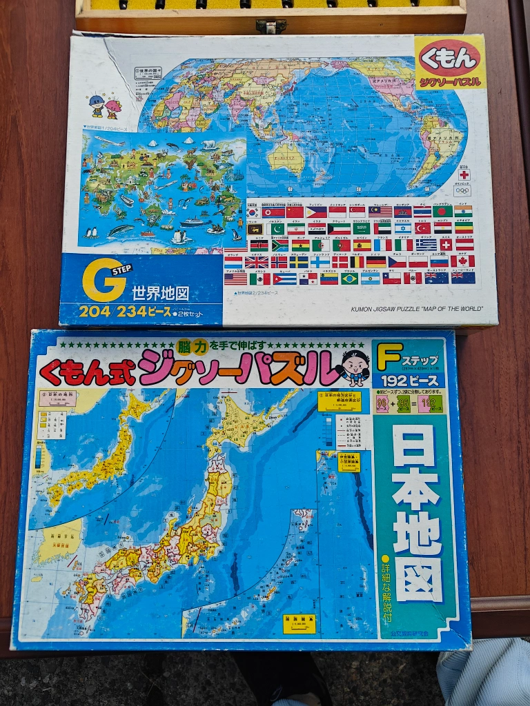 Giving away a Kumon jigsaw puzzle set! It includes two puzzles: one of the world map with 204/234 pieces and another of Japan with 192 pieces. Perfect for kids who love geography and puzzles and anyone learning Japanese or anyone who loves puzzles.