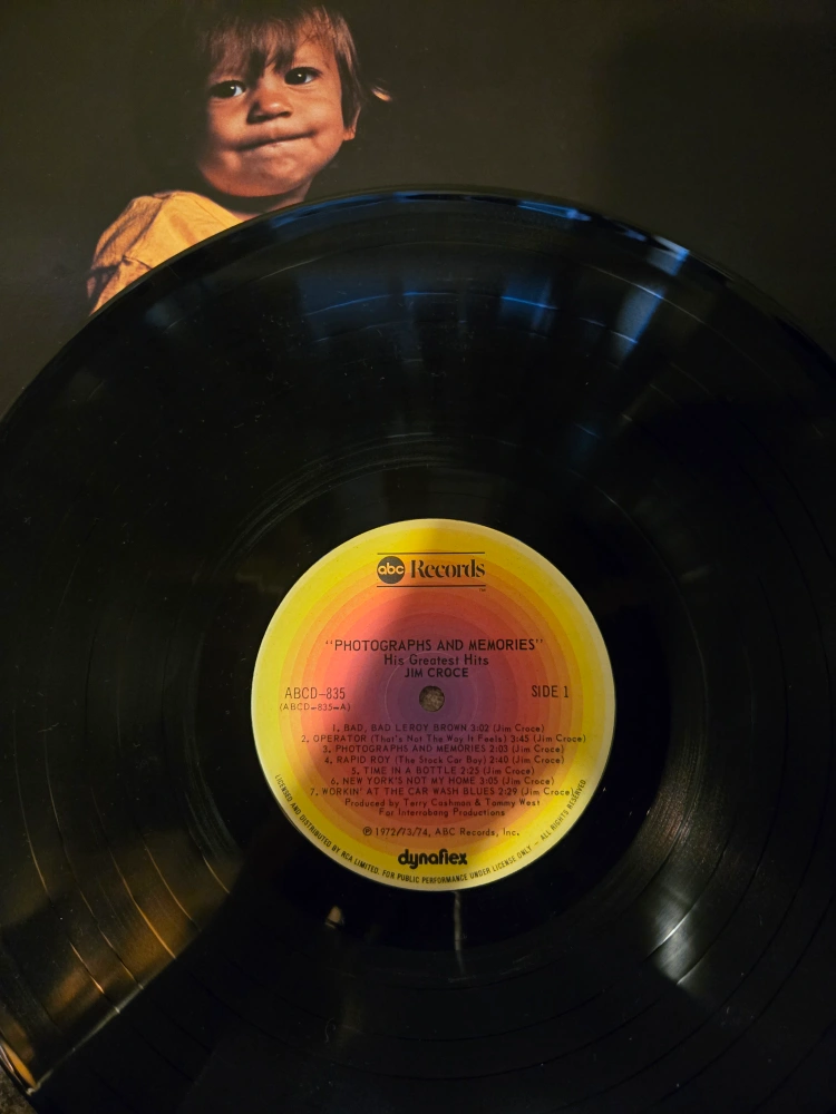 Selling a Jim Croce vinyl record, titled "Photographs and Memories - His Greatest Hits"! It's an ABC Records release from 1972/1974, identified as ABCD-835. A great addition for any vinyl collector or Jim Croce fan