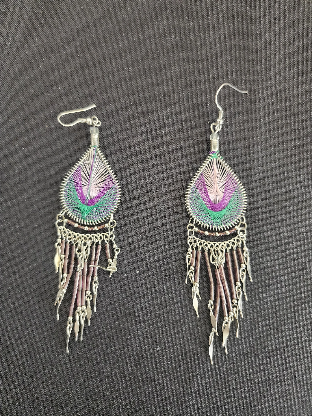 Jingle earrings, green/purple/lavender woth beaded dangles. Price firm.