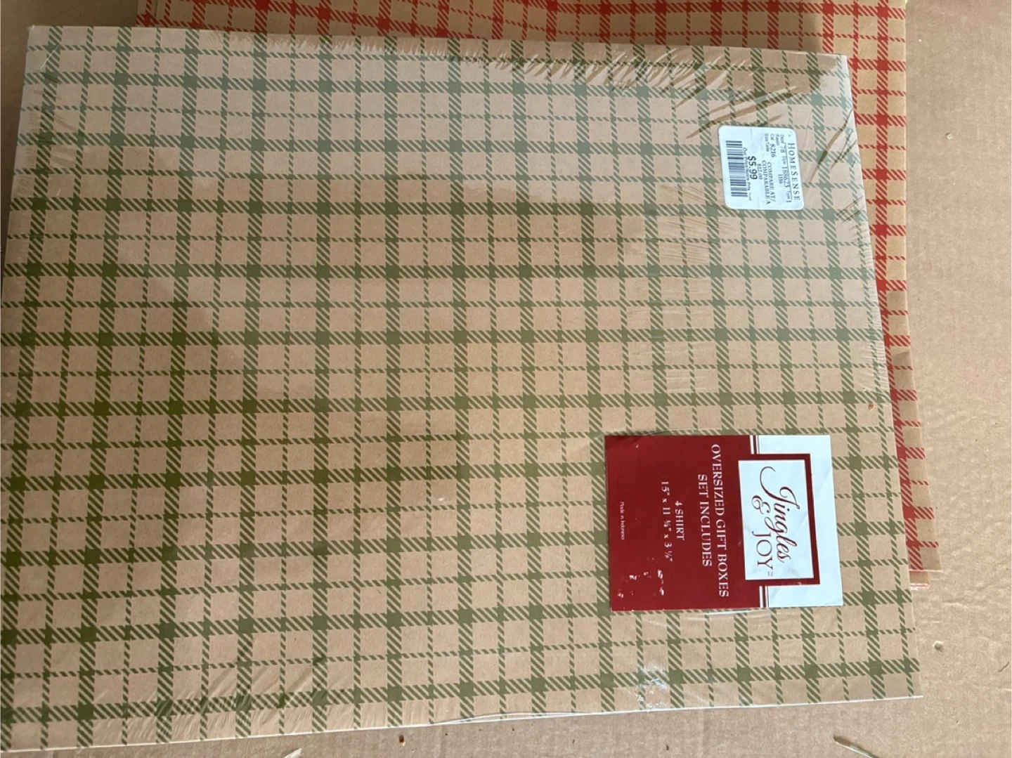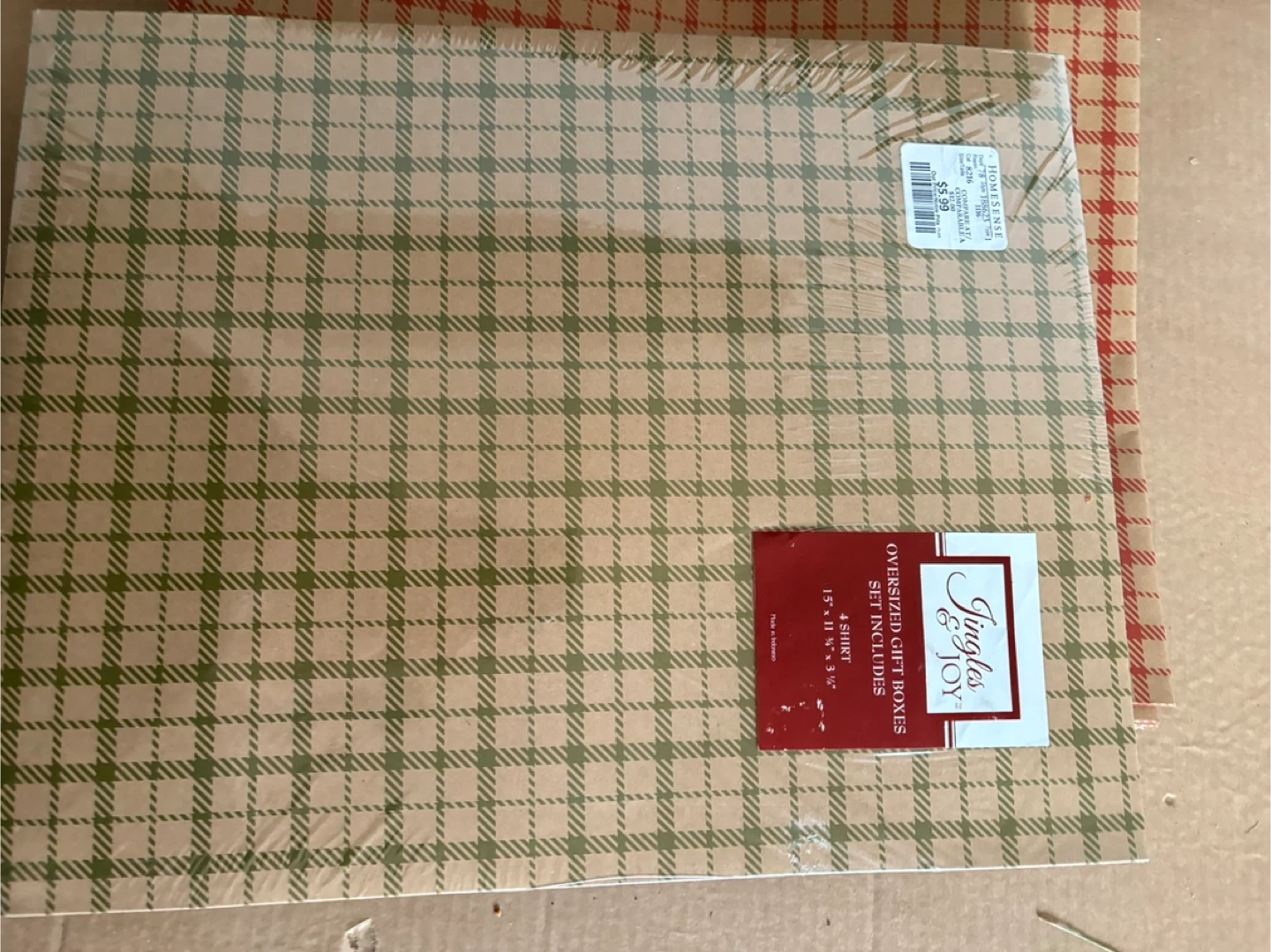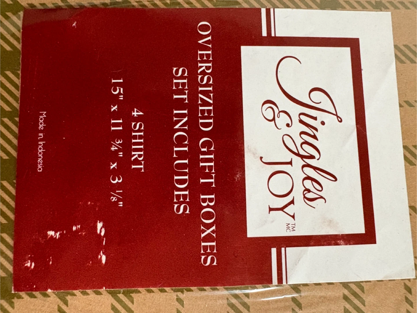 I'm selling a brand new set of Jingles & Joy oversized gift boxes! The set includes 24 shirt boxes that measure 15" x 11" x 3.5". Also includes gift ribbon! Pick up at Morley trail NW