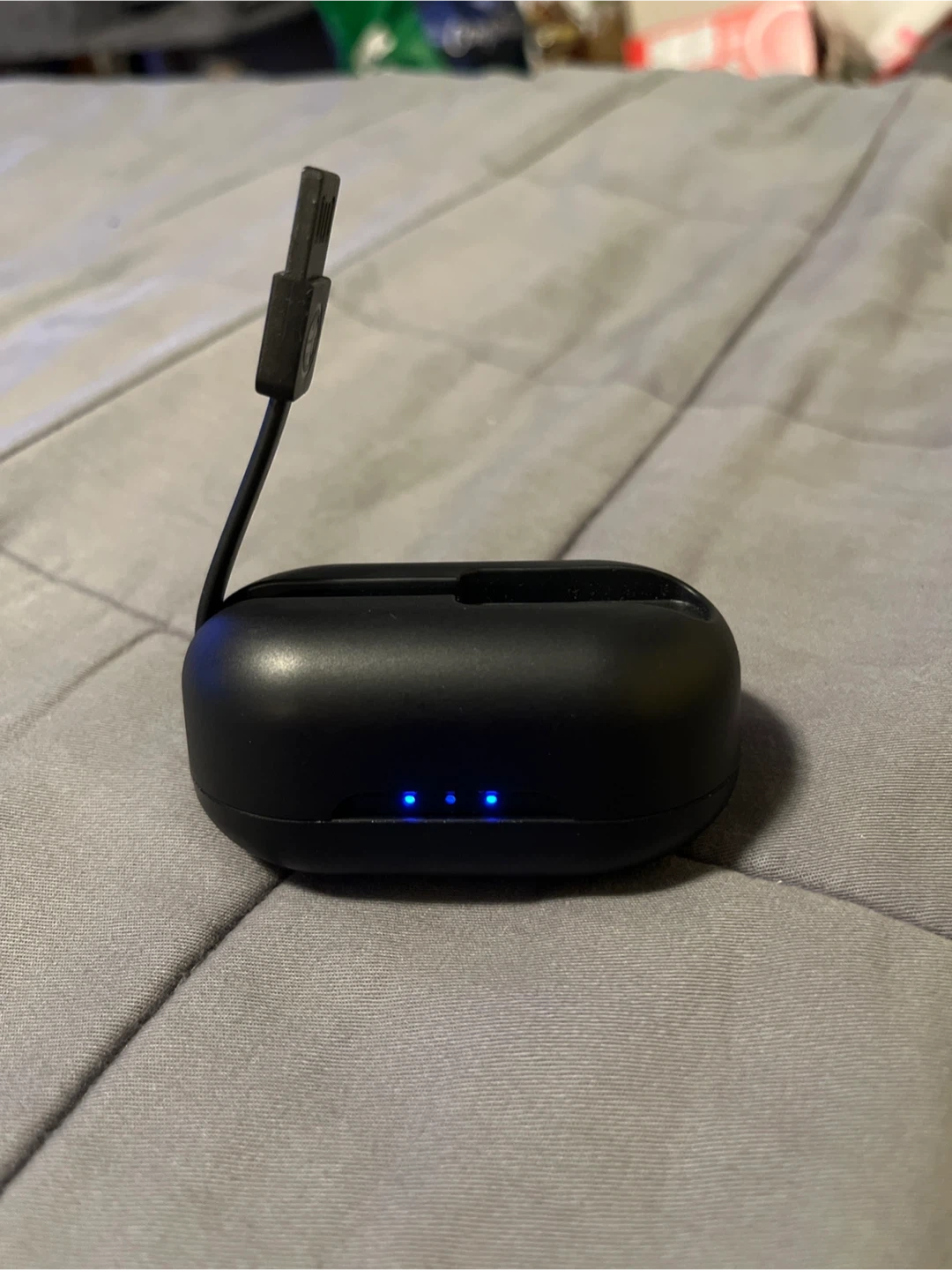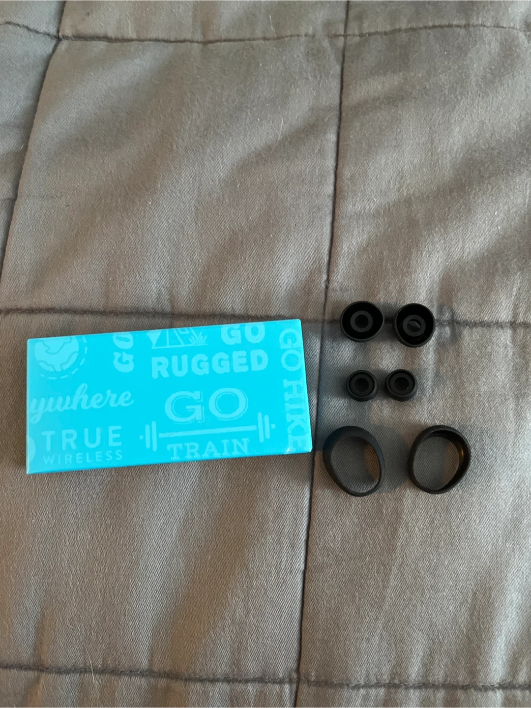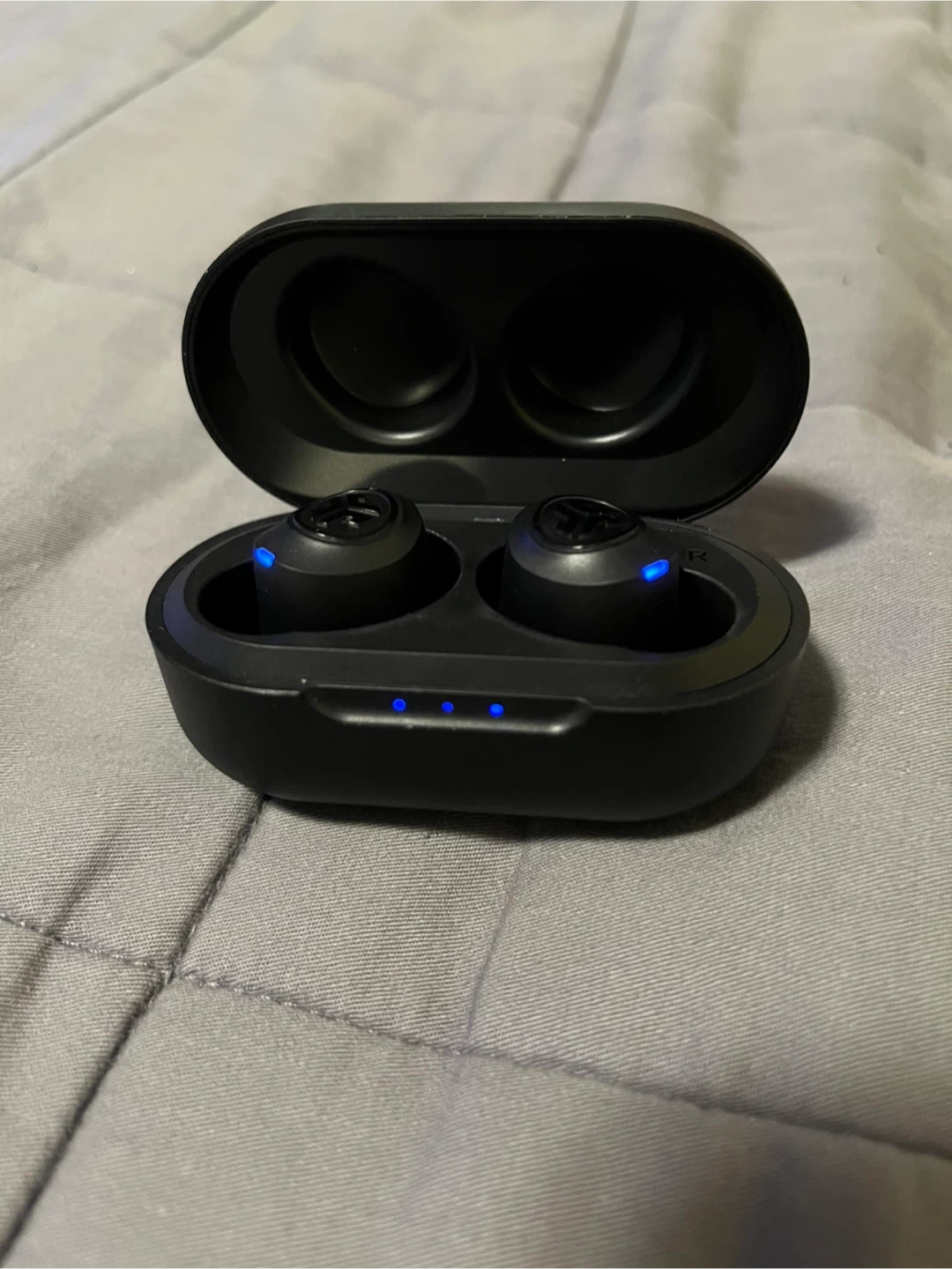never used, comes with the charging case, and extra ear tips.