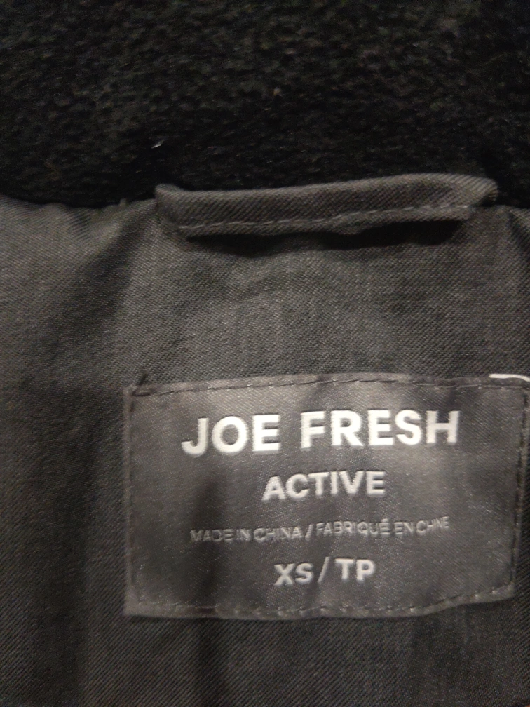 Selling a Joe Fresh Active winter coat in size XS. It's a stylish and practical coat for the colder months. The coat is black and features a hood for extra protection against the elements.