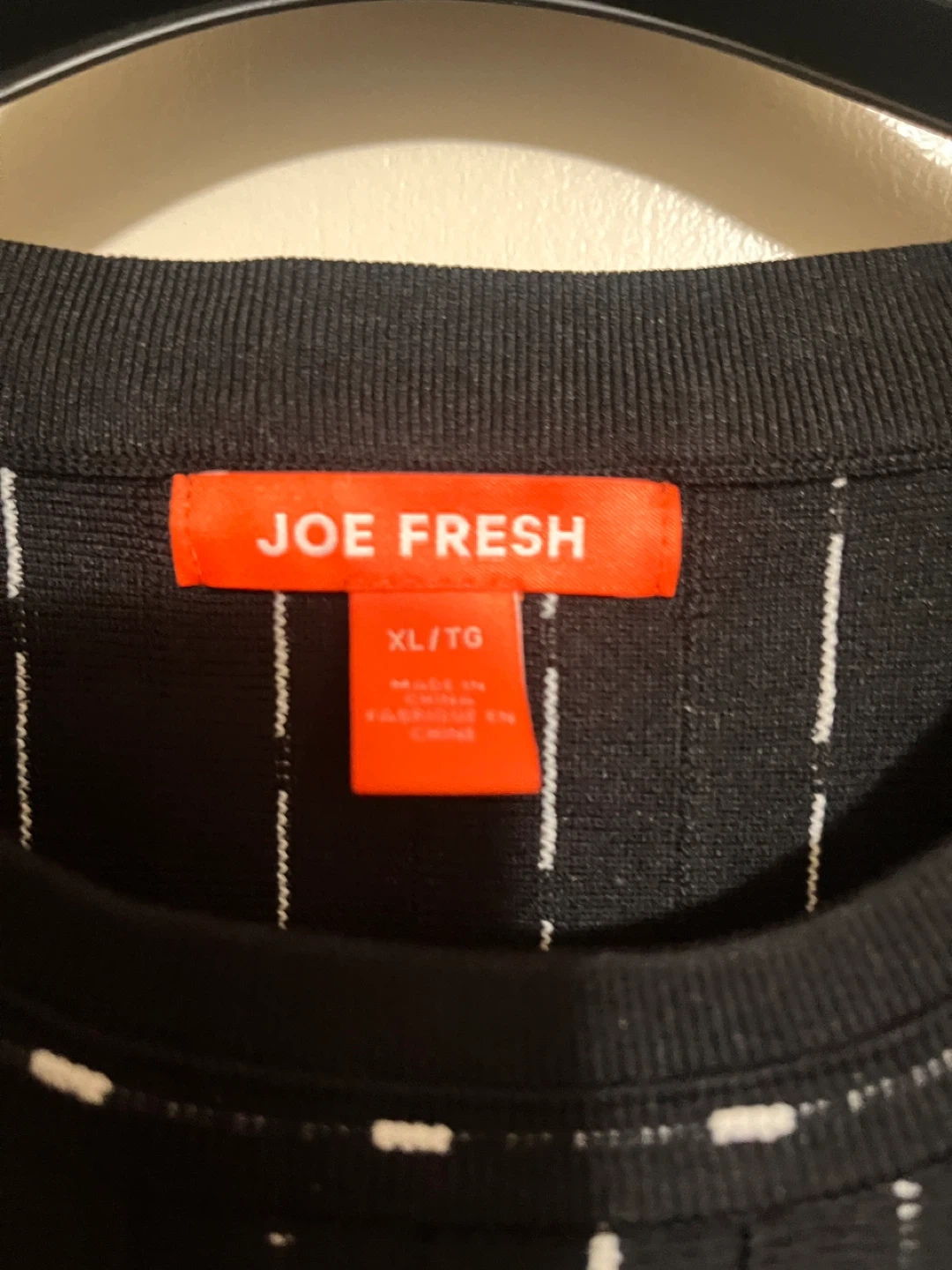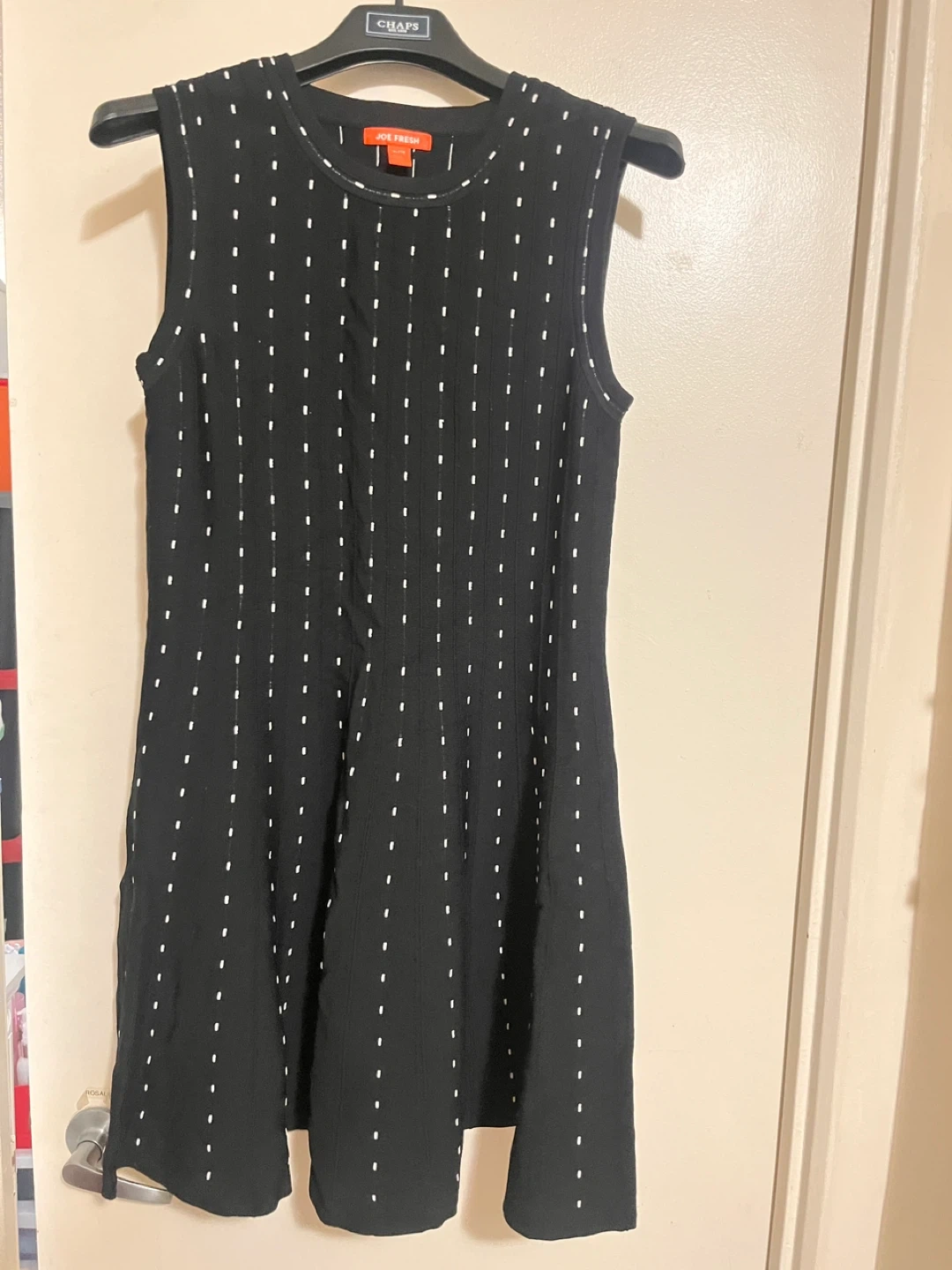 Here's a Joe Fresh dress in size XL! It's a black dress with a subtle pattern. Perfect for a casual day out or dressing up for an evening event