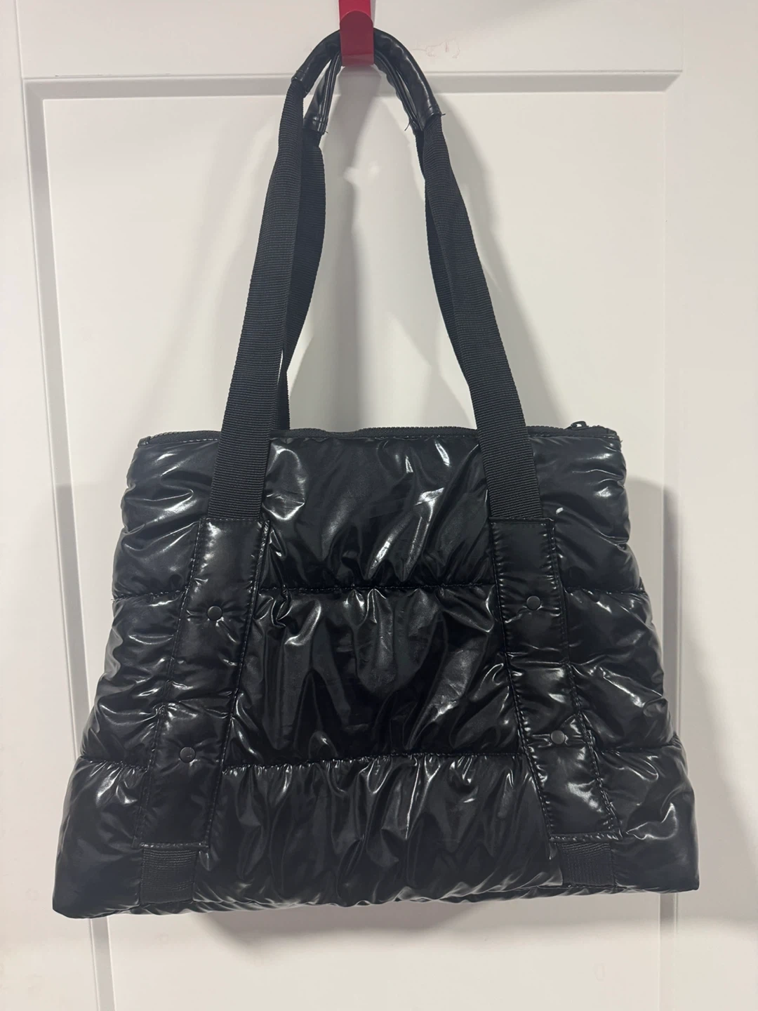 Selling a Joe Fresh black quilted tote bag. It's in great condition and perfect for everyday use. The quilted design adds a stylish touch, and it's super practical for carrying your essentials