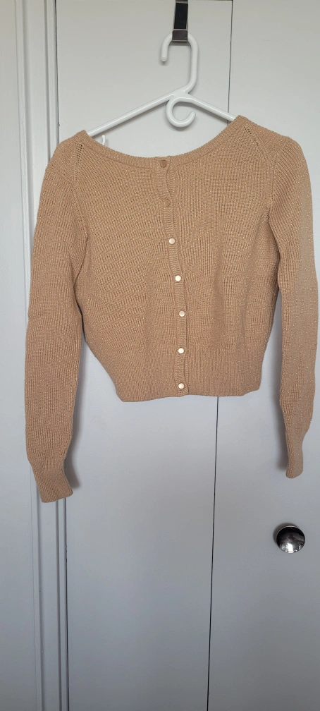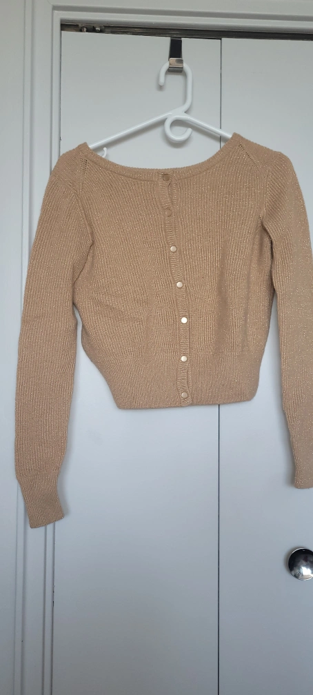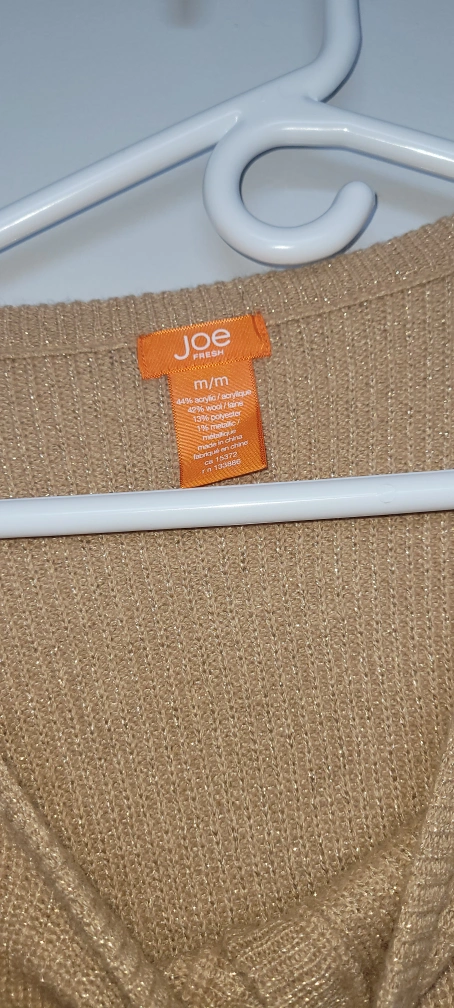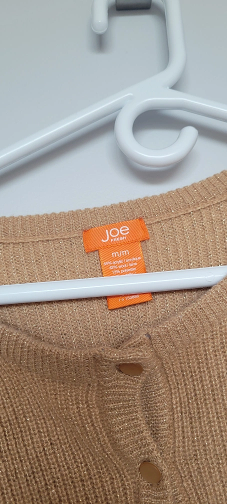 Selling a Joe Fresh cardigan in size medium. It's a lovely beige colour with a bit of sparkle. The material is 52% acrylic, 45% wool, and 3% metallic. I usually wear a size XS. Used once. Coming from a clean smoke-free, pest-free, pet-free home. Available to meet around Bathurst & Sheppard, Vaughan Mills or around Finch & Yonge. Cash Only!!