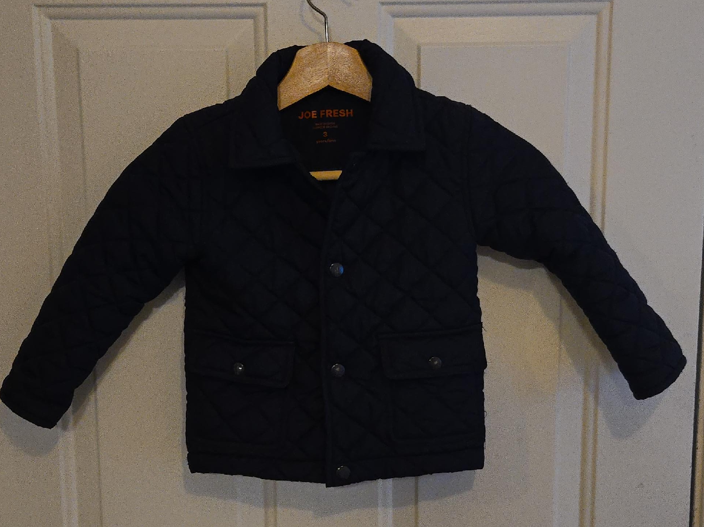 Here's a Joe Fresh quilted jacket for kids! It's in great shape and perfect for keeping your little one warm. The size is 3 years/tons