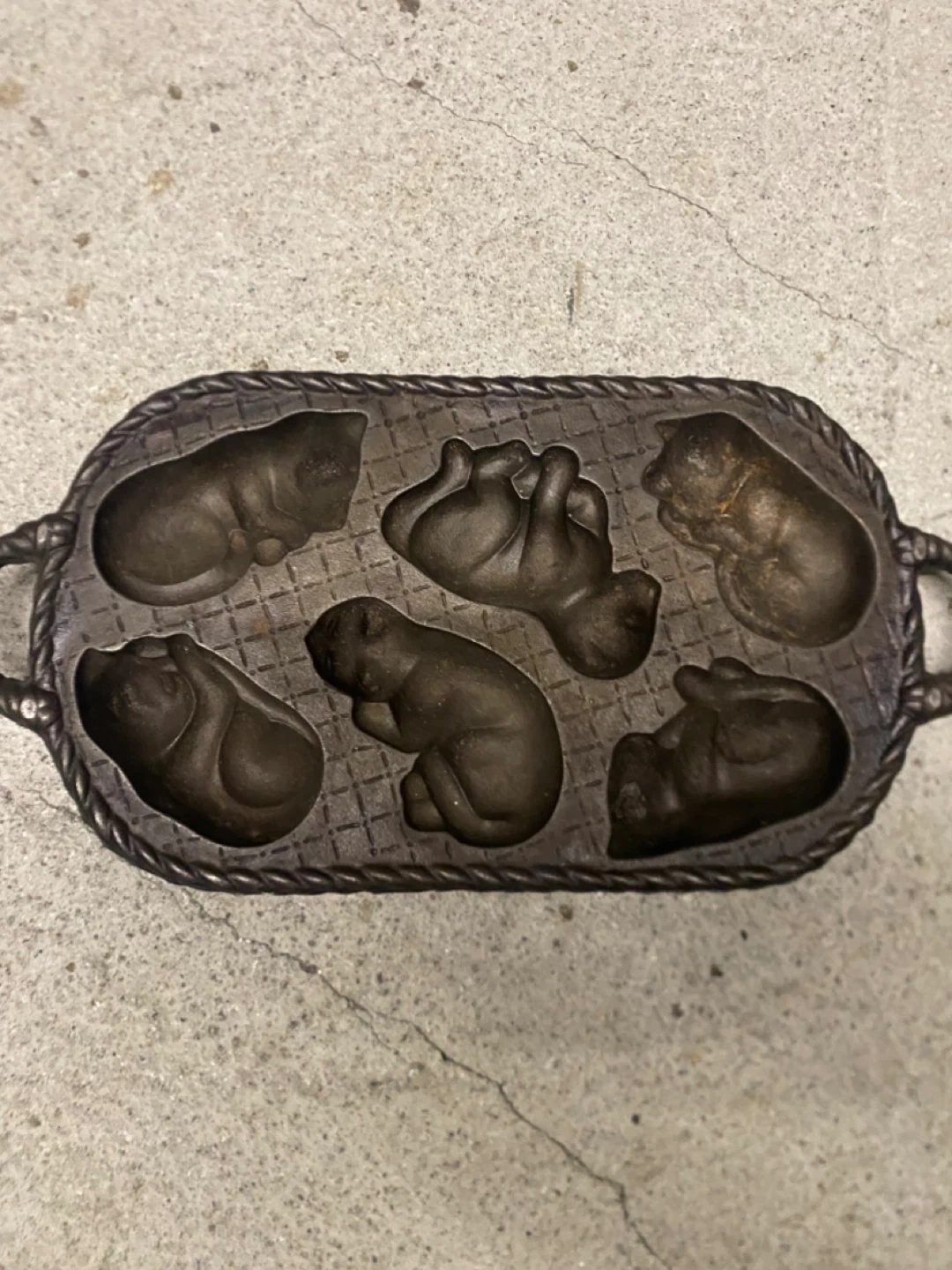 John Wright Vintage Heavy Cast Iron Cats Baking Pan