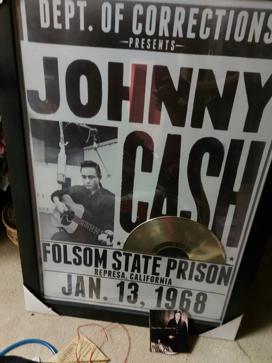 Framed Johnny Cash poster from Folsom State Prison, January 13, 1968. Comes with a bonus Johnny Cash - Recovered CD!