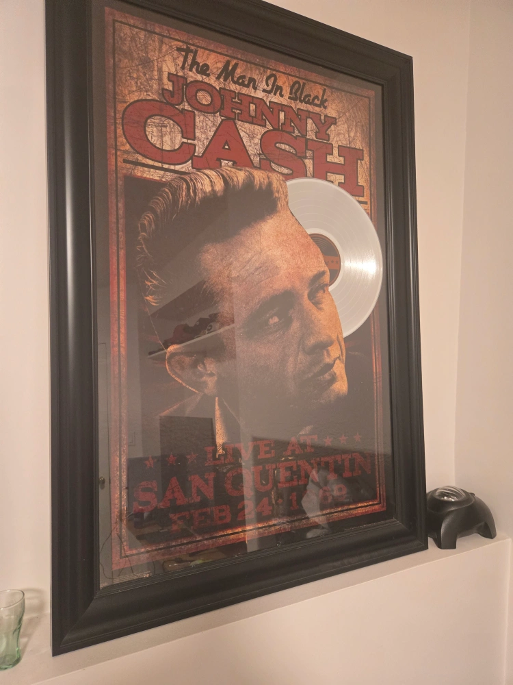 Selling a framed poster of Johnny Cash's 'Live at San Quentin' album. It's in great condition and would look awesome in any music lover's home