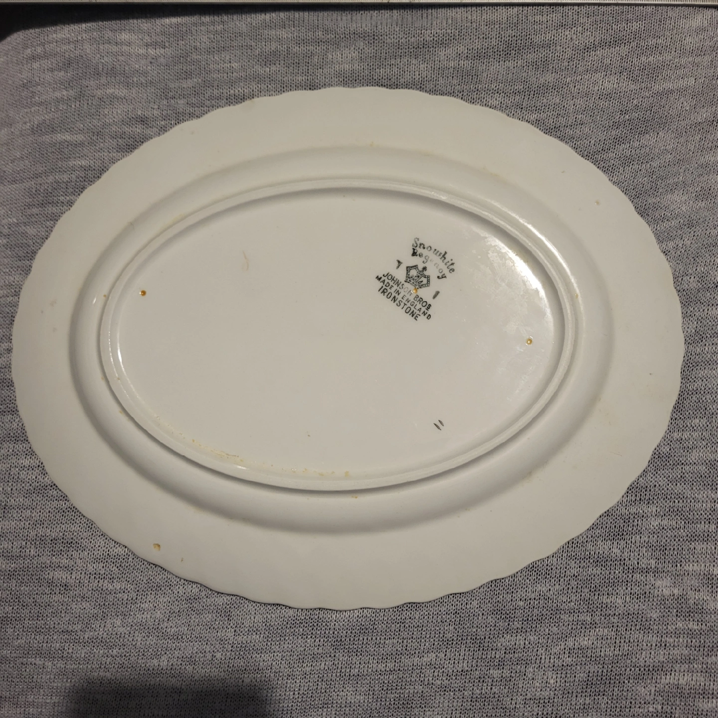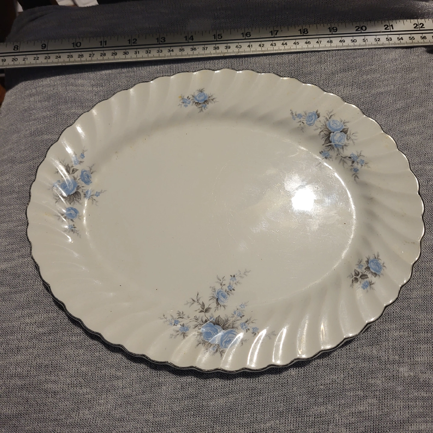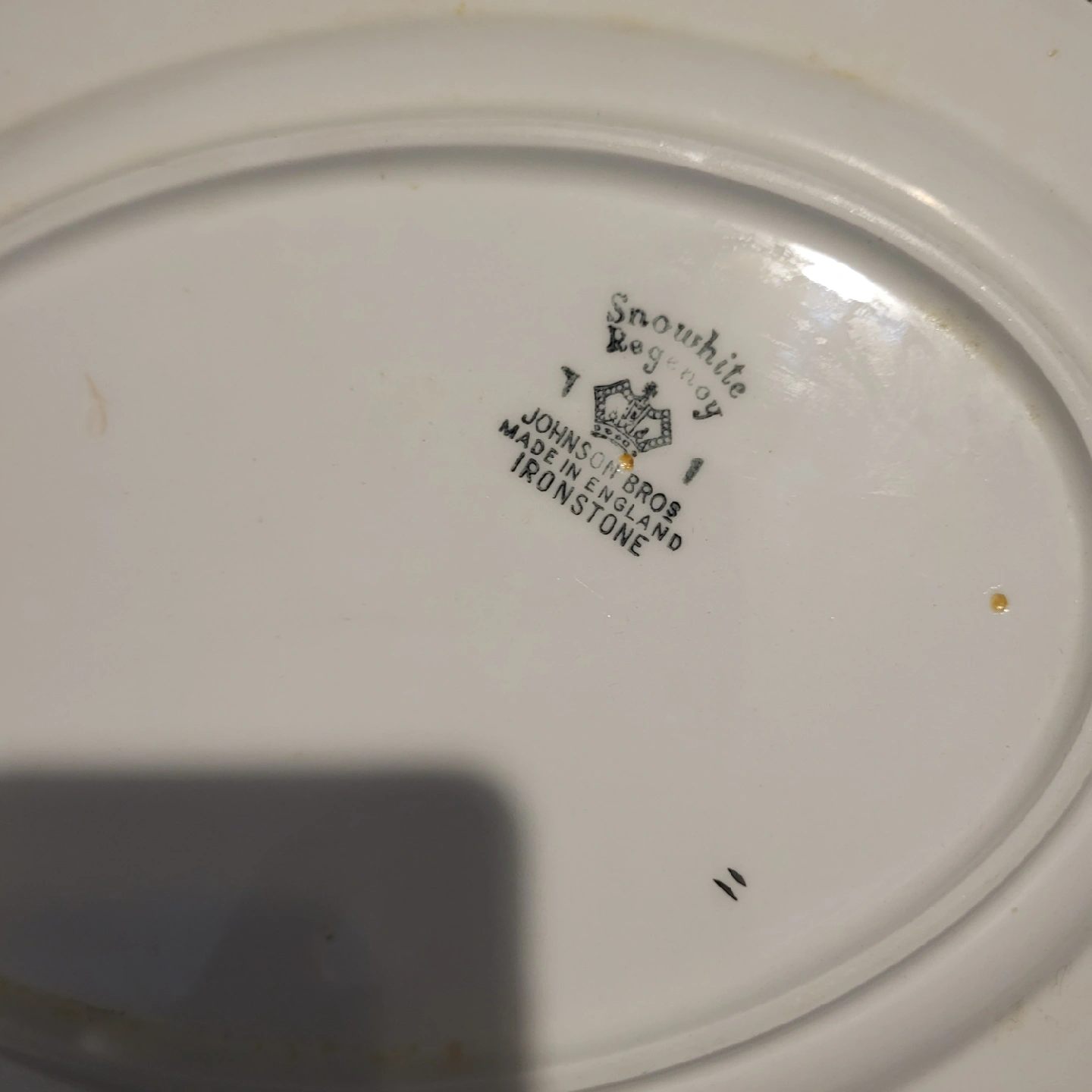 Selling a lovely Johnson Bros Snowhite Regency platter! It's in good condition and features a delicate blue floral design around the rim. Perfect for serving up your favourite dishes at your next gathering. 31 x 24