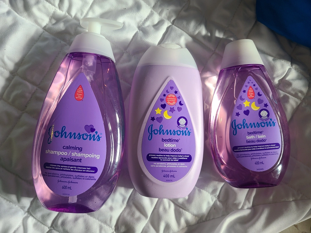 sampled but aside from that they are full Selling a set of Johnson's baby products! Includes: - Calming Shampoo (600 mL) - Bedtime Lotion (400 mL) - Bedtime Bath (400 mL) Perfect for your little one's bedtime routine