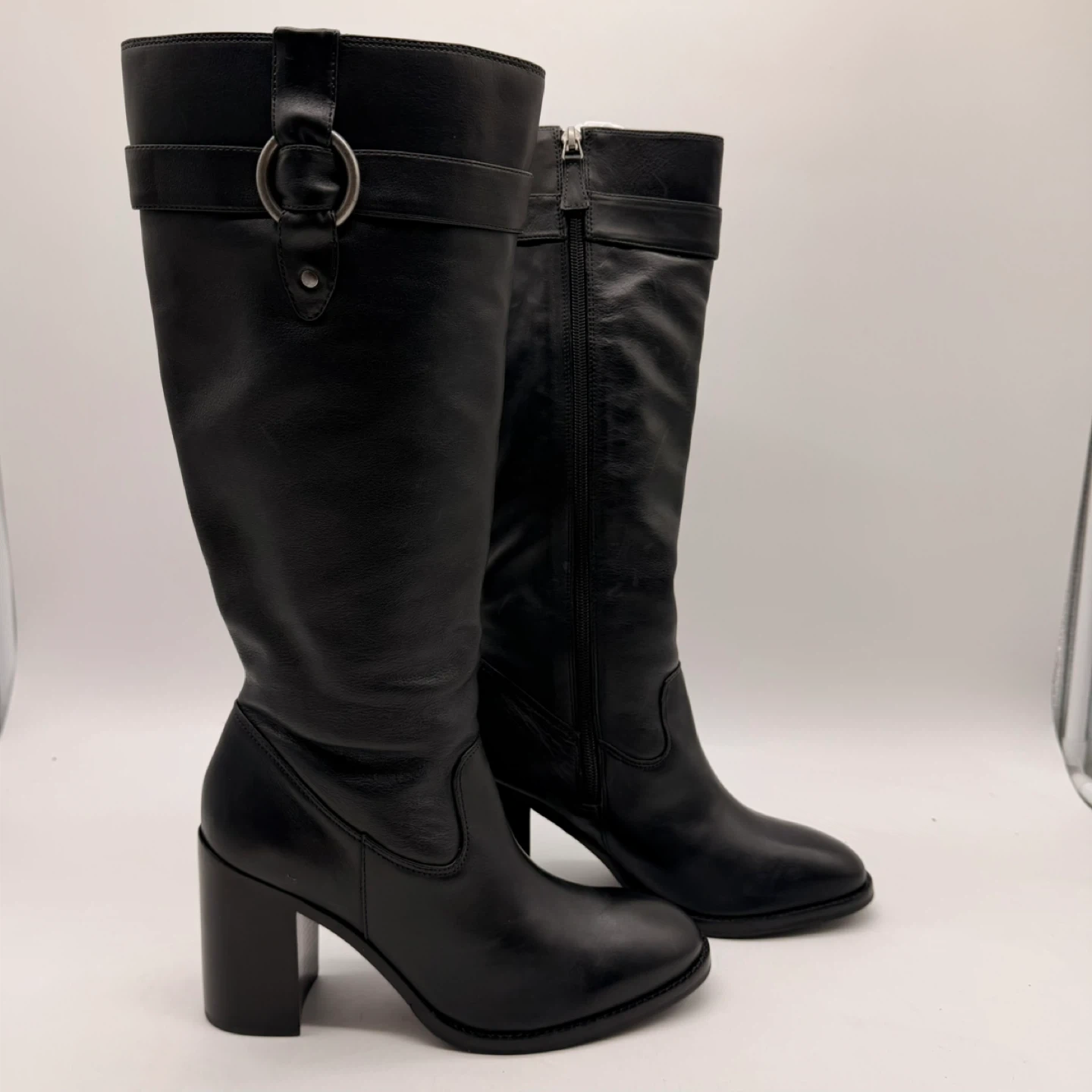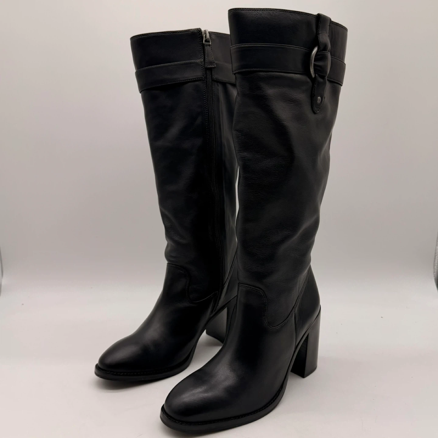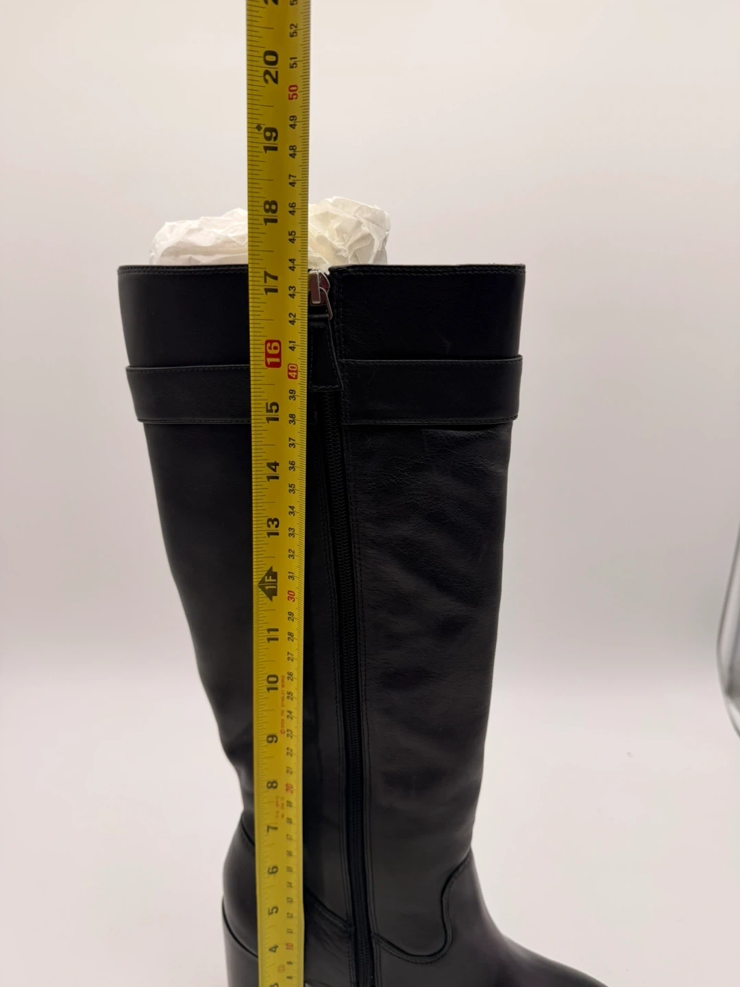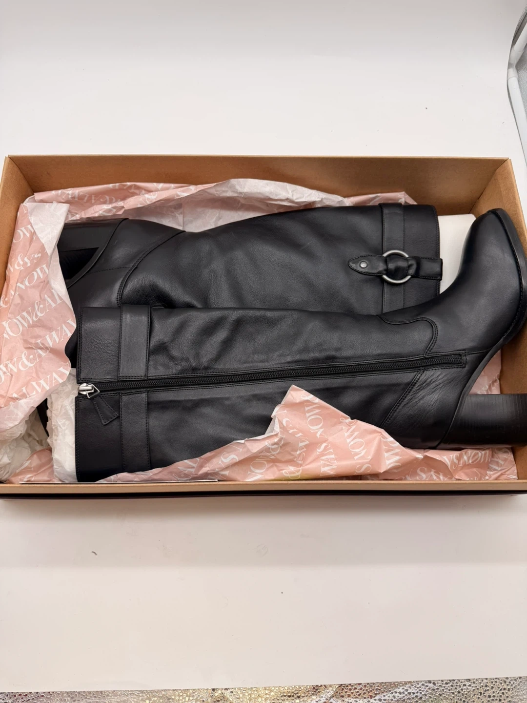 Elegant and timeless Johnston & Murphy Hadley tall boots in smooth black leather. • Size: Women’s 9M (US) • Material: Genuine leather upper, leather/synthetic sole • Height: ~16” from heel to top • Heel: ~3.25” block heel • Side zipper for easy on/off • Lined interior for comfort • Made in Brazil • Brand new in box Perfect for pairing with dresses, skirts, or jeans — a sleek, sophisticated look from a premium heritage brand. 📍Pickup in North York or shipping available. 17 up