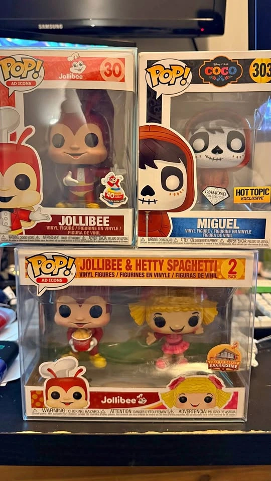 Jollibee and Hetty Spaghetti 2 pack - 100$ Jollibee #30 40 year anniversary - 60$ Coco Miguel #303 hot topic + diamond edition - 30$ If you buy the lot I’ll give you a deal! Cash only, meetups at Fairview/Markville mall Message me for inquiries