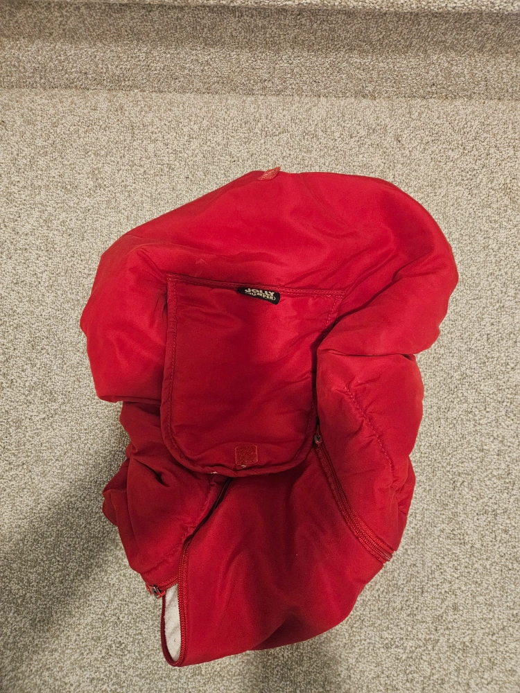 Keep your little one warm and cozy with this Jolly Jumper Arctic Sneak-a-Peek. It's in great condition and ready for a new home. The red colour is vibrant and perfect for those chilly days!