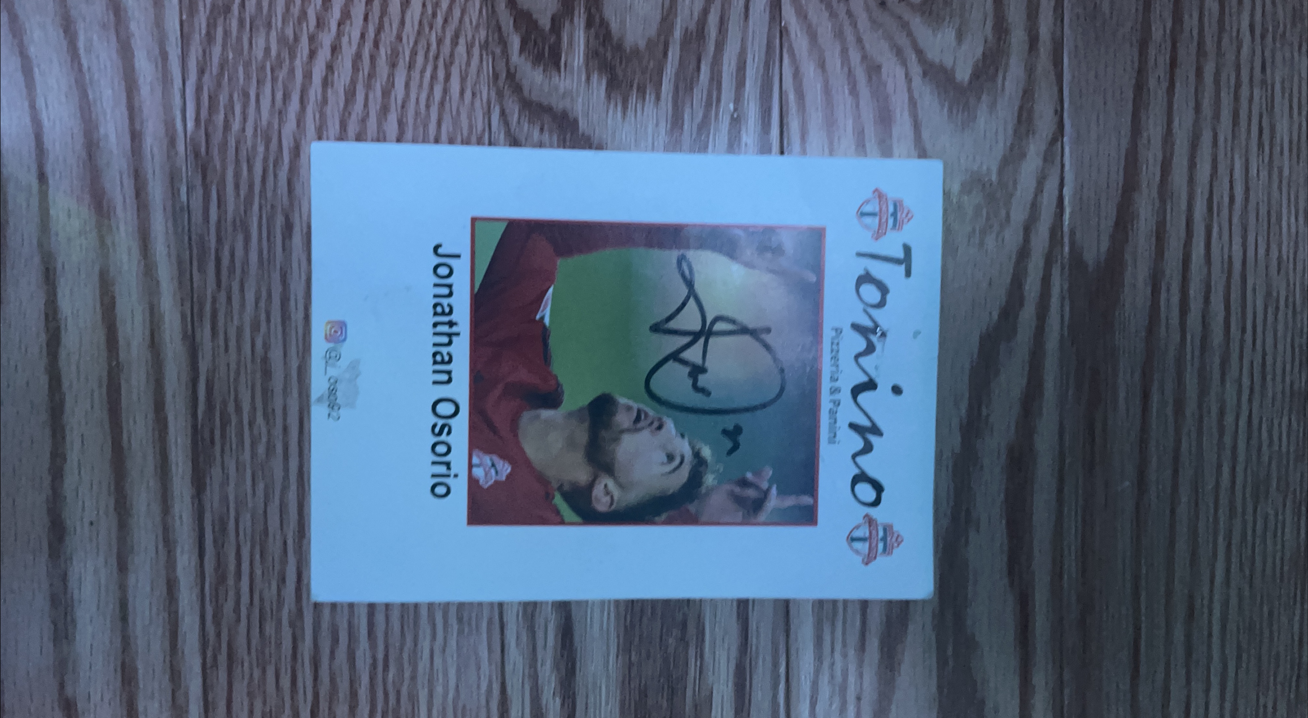 Selling a Jonathan Osorio autographed card from Tonino Pizzeria & Panini. A unique collectible for any TFC fan!