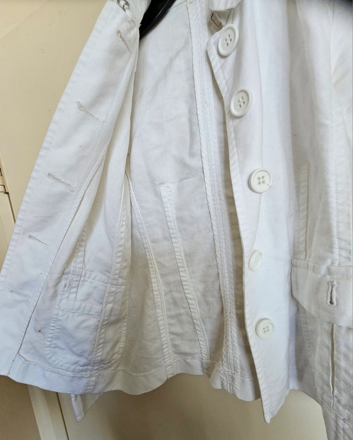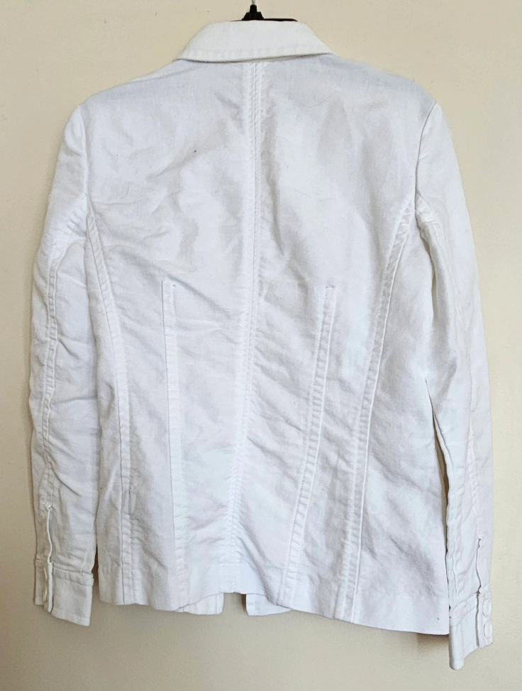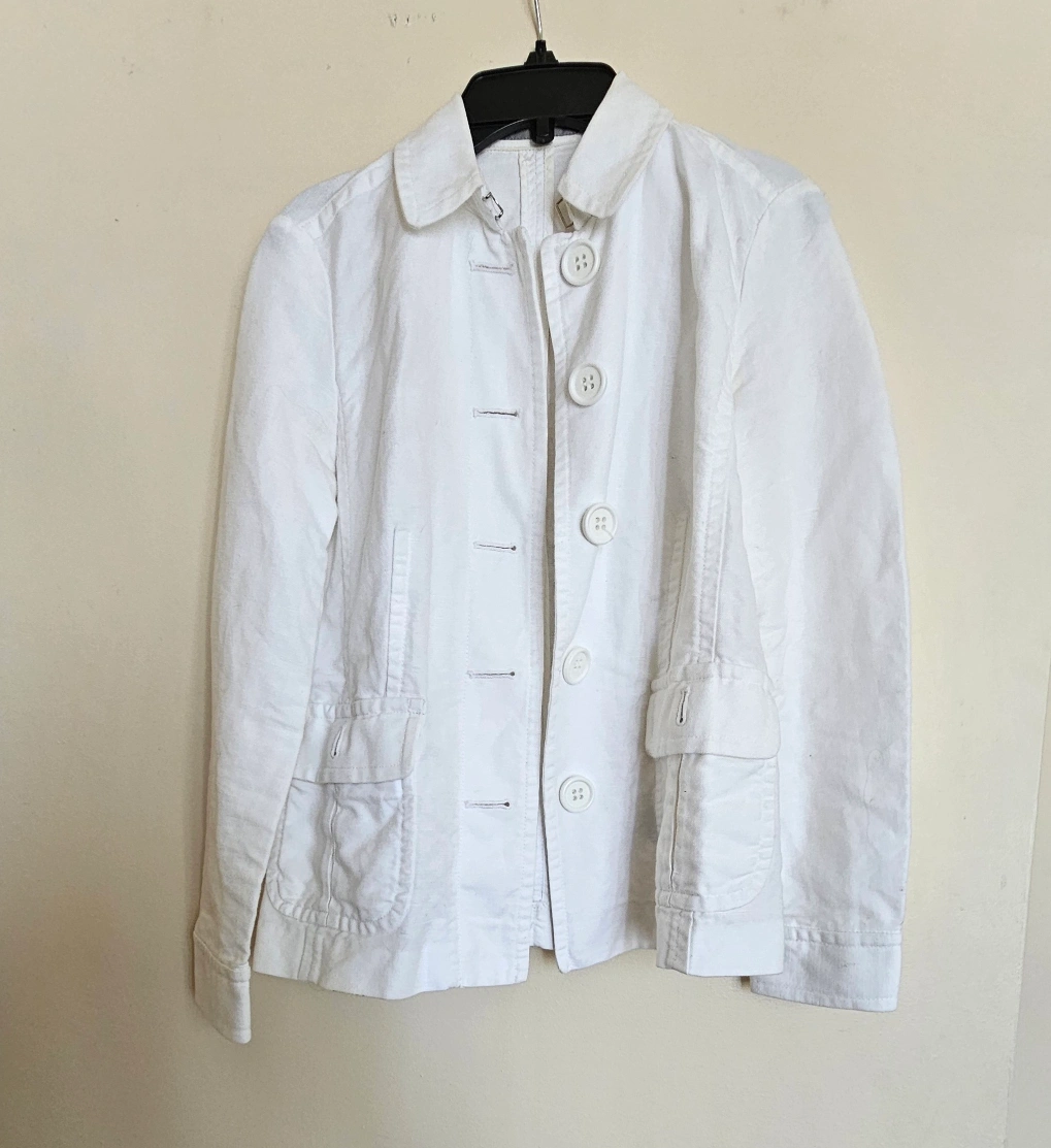 Like - new Jones New York jacket in white. Made from a blend of linen and cotton, size is small.