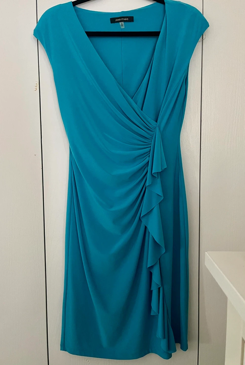 A lovely teal dress from Jones Studio in size 8! Perfect for a special occasion or a night out.