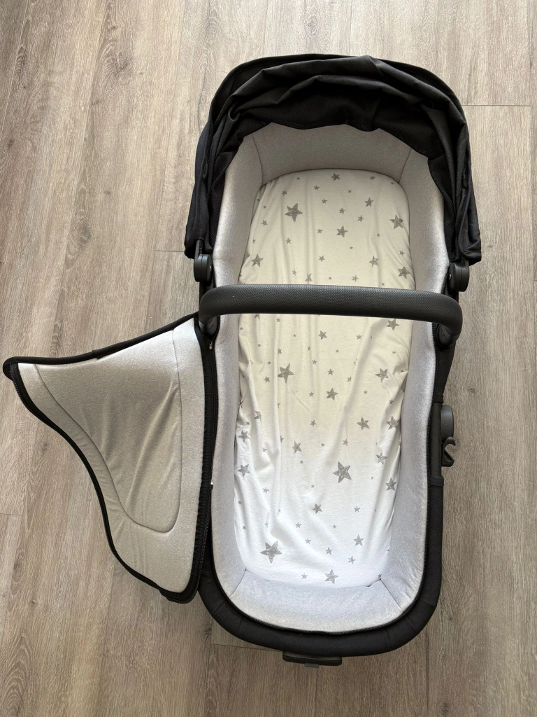 Selling a Joolz bassinet in excellent condition, barely used and comes with the original box. Clean, well-maintained, and from a smoke-free and pet-free home. Includes the original rain cover, perfect for keeping your baby dry and protected during wet weather. Soft interior with a star-patterned mattress cover, full canopy for sun protection, and premium quality finish. All zippers and fastenings work perfectly. Only used a handful of times – almost like new!