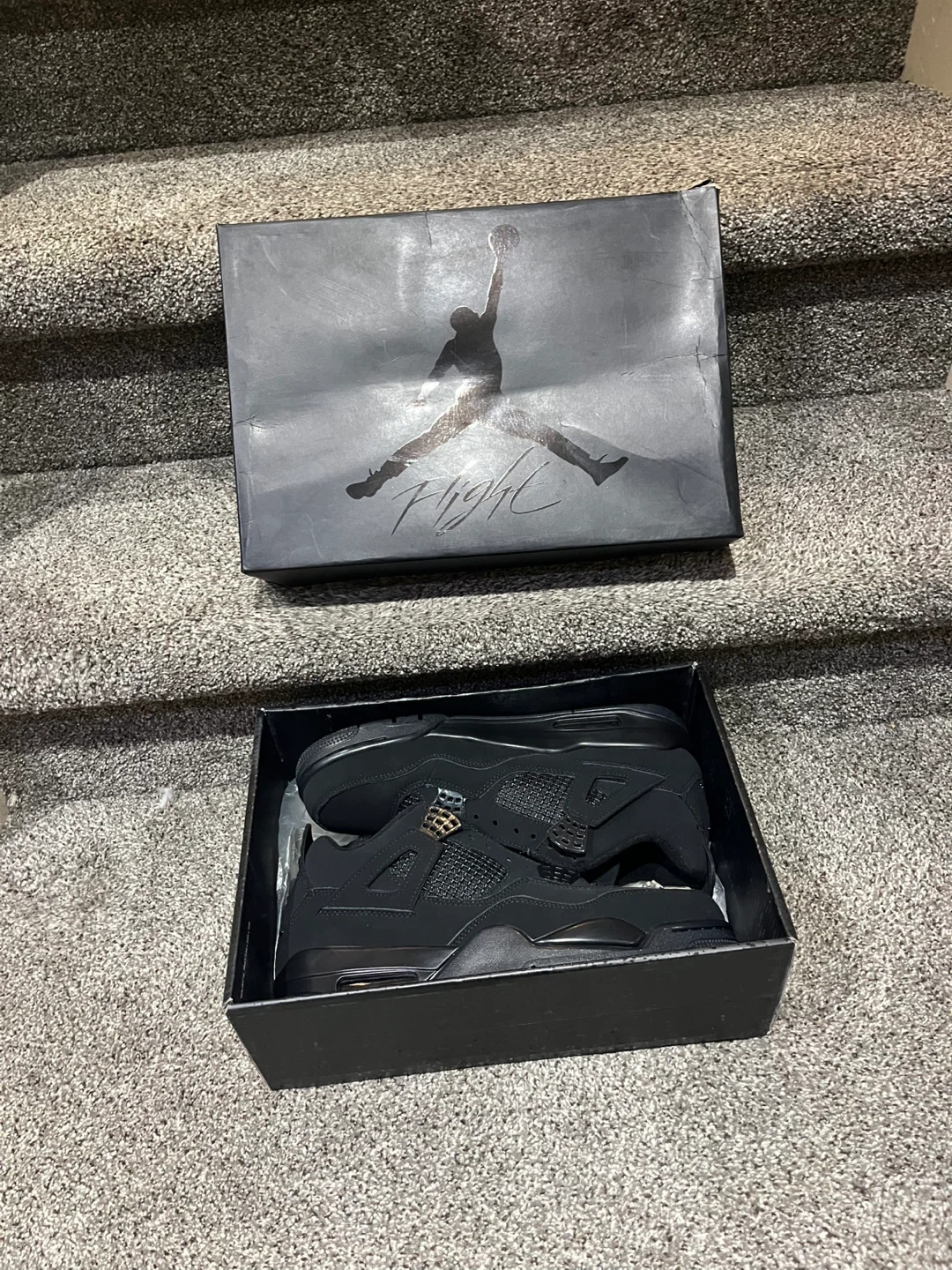 Selling a pair of Jordan 4 Retro in the Black Cat colourway! They come with the original box. Size 11 men’s. The shoes are brand new and are 100% legit. No trades. Cash or e-transfer. Comes with the shoes, box, Nike Jordan plastic bag, box paper, and air Jordan shoe tag. I am willing to ship the shoes through a shipping company but it will cost to ship it. (Price is negotiable)