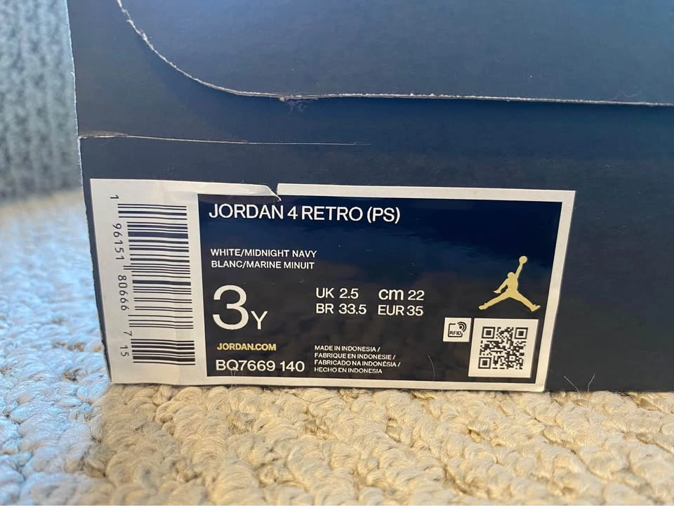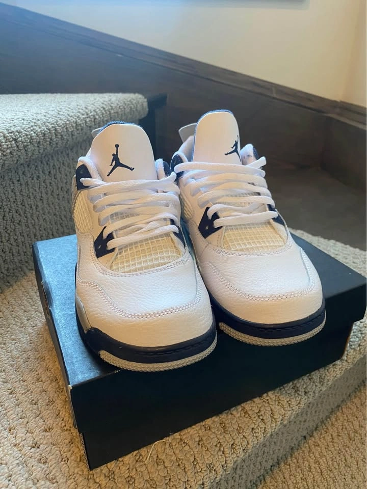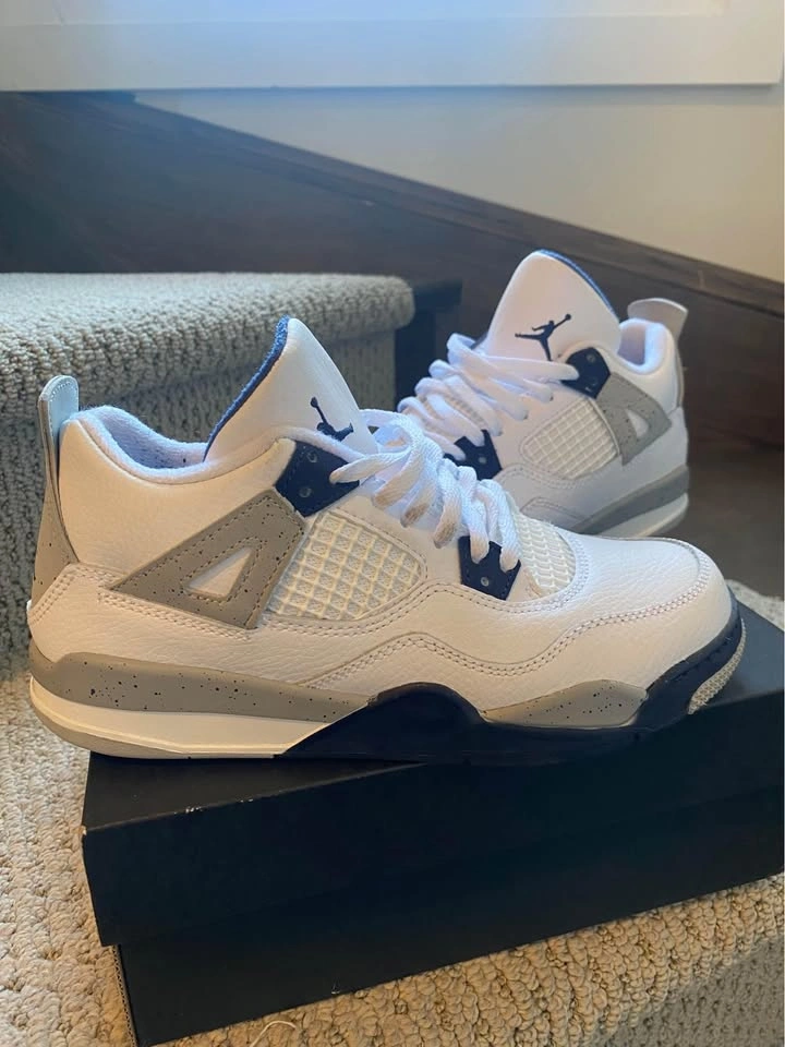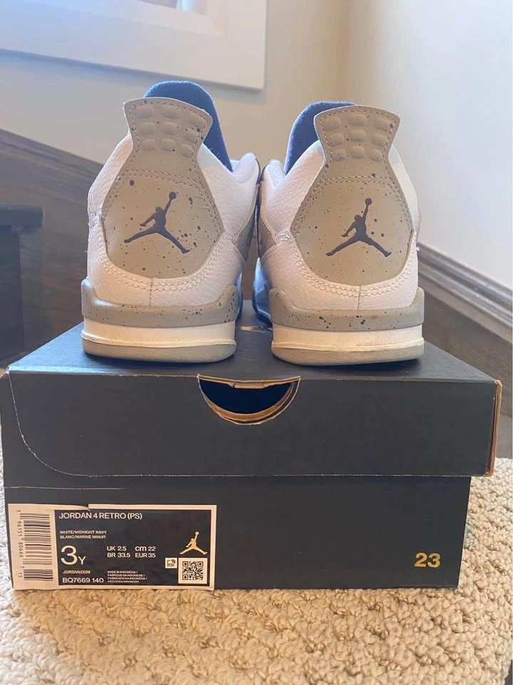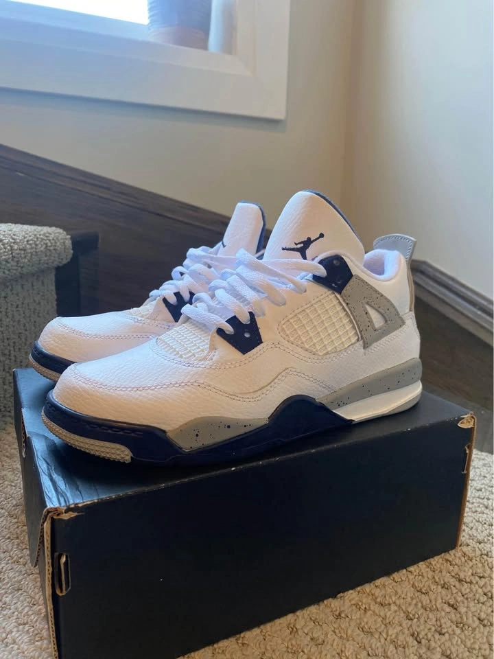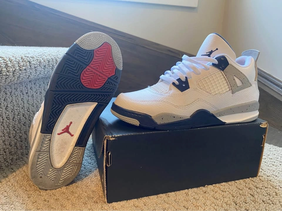 Gently used Jordan Retro Midnight Navy Cement 4s. Used twice only! I usually wear a size 5 in women’s so the 3Y fits comfortably for us petite women! Pick up or drop off in Scarborough.