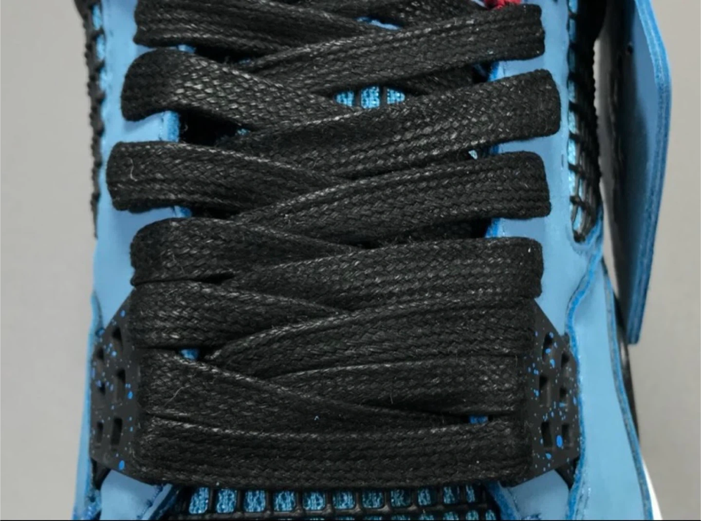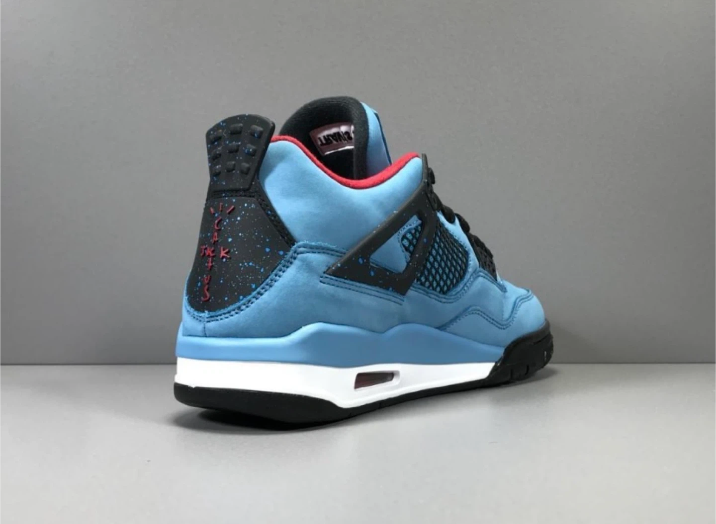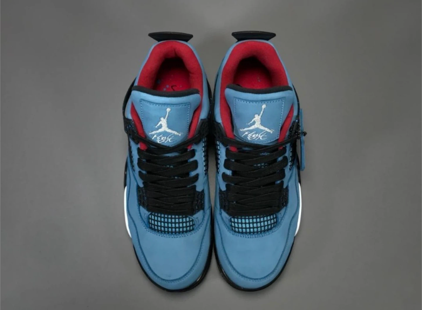 Selling a pair of Jordan 4 Retro Travis Scott Cactus Jack sneakers. These shoes feature a striking light blue upper with black accents and the signature Cactus Jack branding. They are in great condition and ready for a new home!