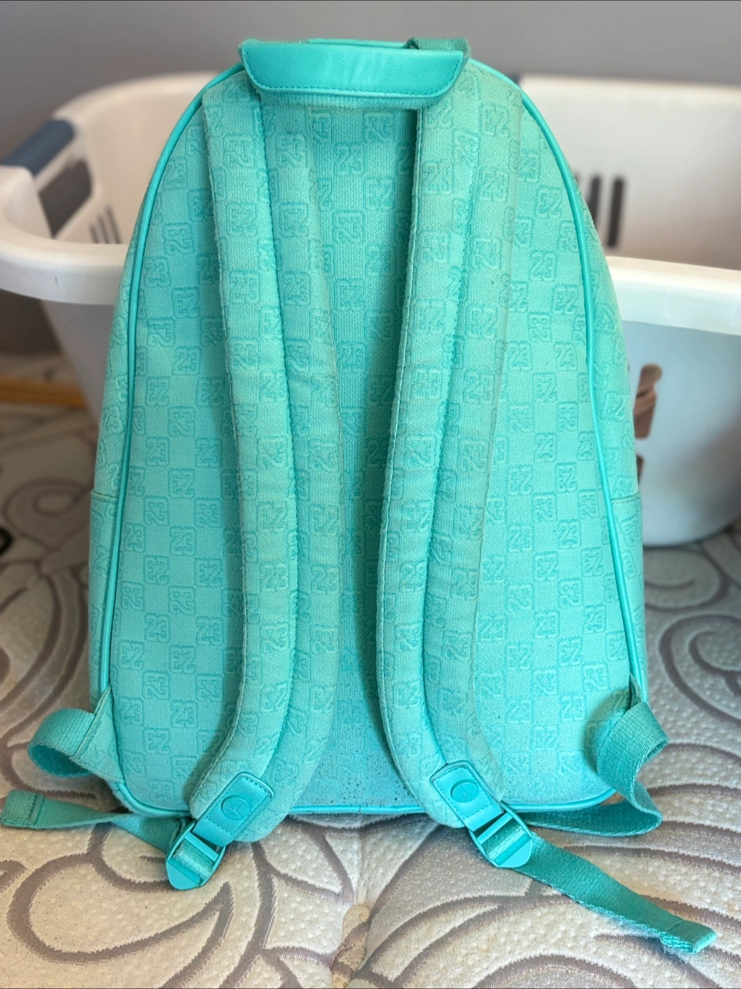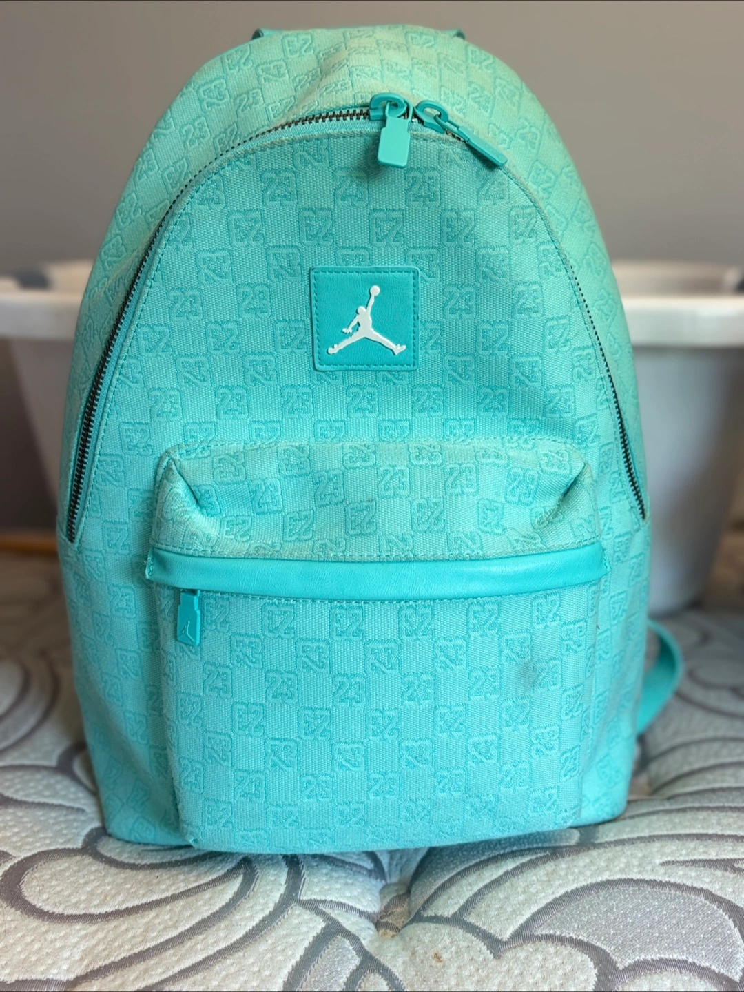 Selling a cute turquoise Jordan backpack! It's in great shape and perfect for carrying your essentials. The backpack features the Jordan logo and a repeating '23' pattern. Great for everyday use or as a stylish accessory! Has some marks on it but can be easily washed out. Asking for $40 as originally priced I paid was $120. I am able to meet at any station.