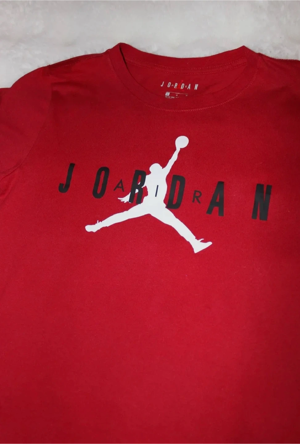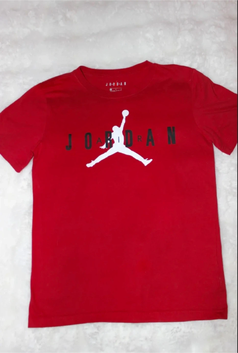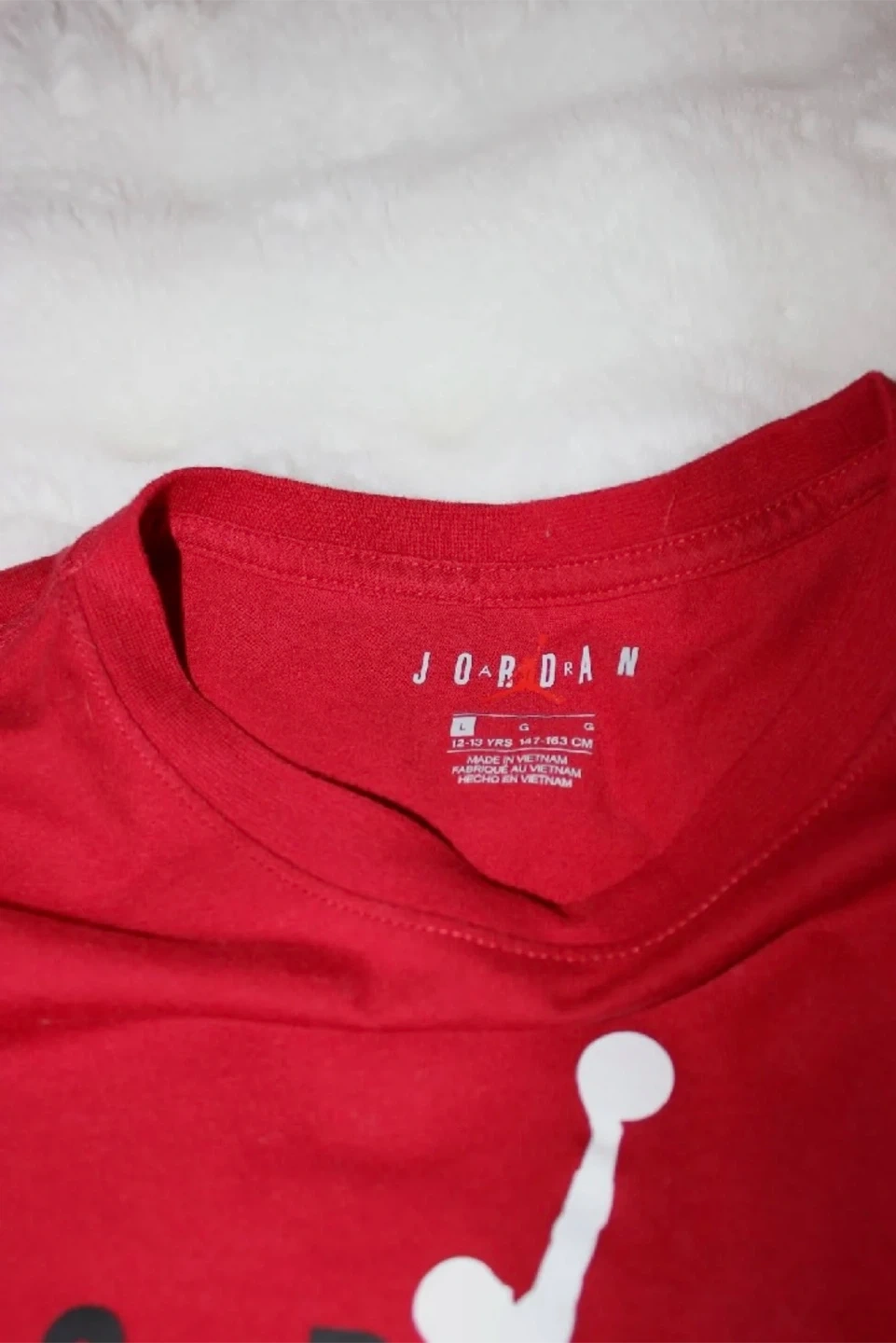 Selling a red Jordan t-shirt in size L (12-13 years). It features the iconic Jordan logo. Perfect for any young basketball fan!❤️
