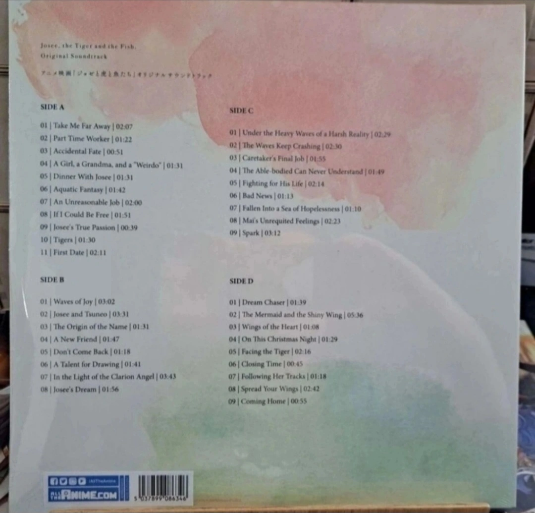 Vinyl record soundtrack from the anime movie "Josee The Tiger and the Fish" (Josee to Tora to Sakana-tachi) This is from AlltheAnime variant. Check pics for the vinyl color way. PICK UP AT EGLINTON WEST AND ALLEN Shipping within Canada at buyer's expense ($25) IF AD IS STILL UP, YES IT'S STILL AVAILABLE.