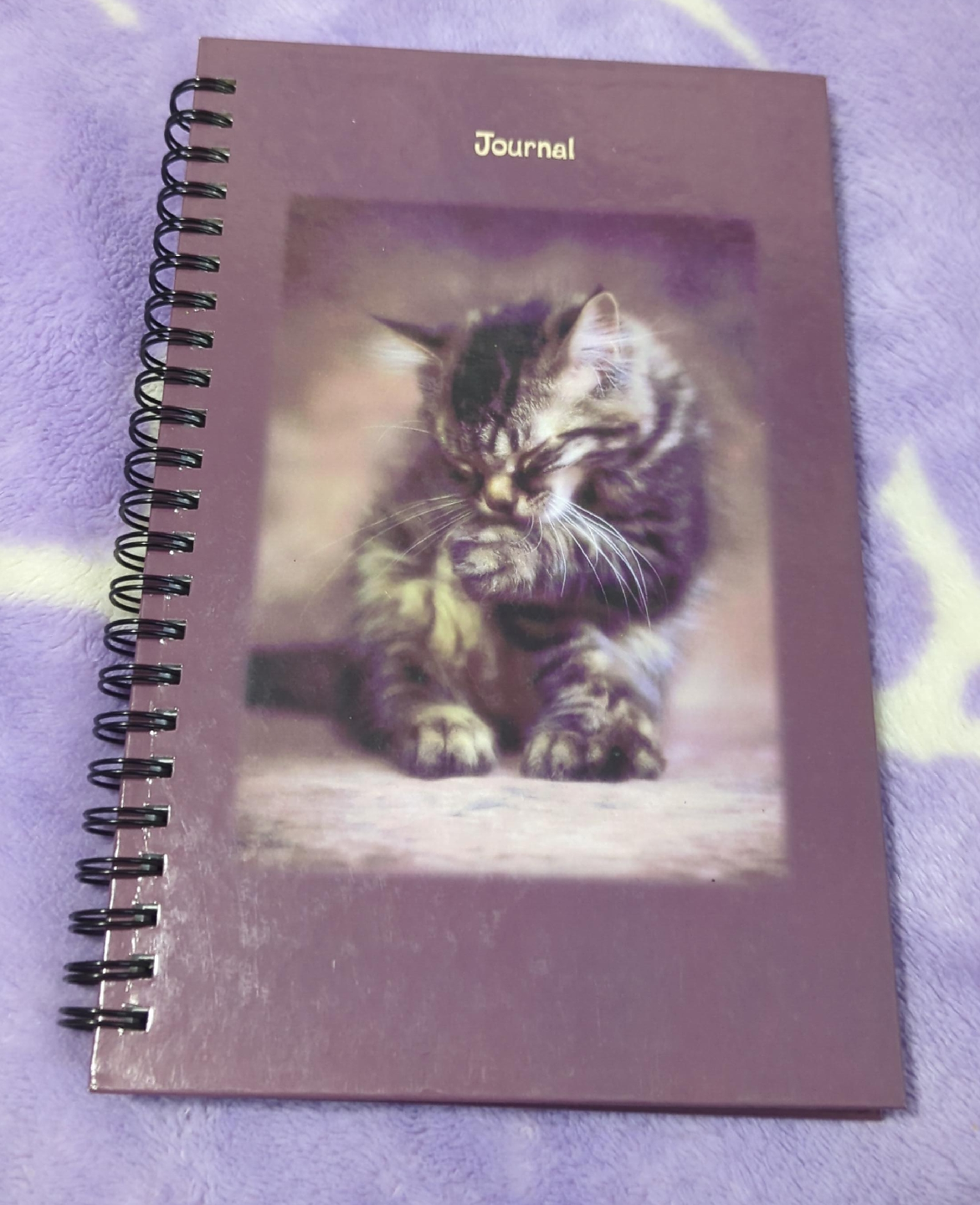 Selling a journal with a sweet kitten on the cover! It's a spiral-bound notebook, perfect for jotting down your thoughts or sketching on the go