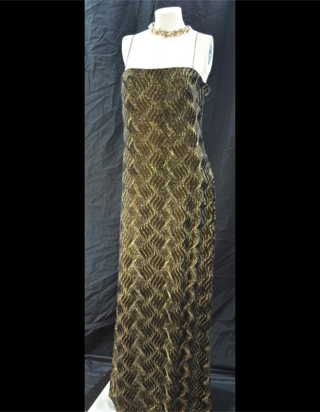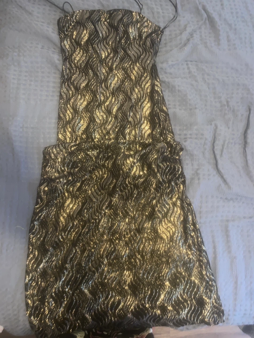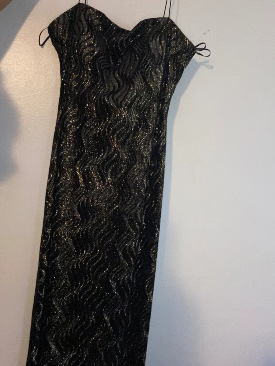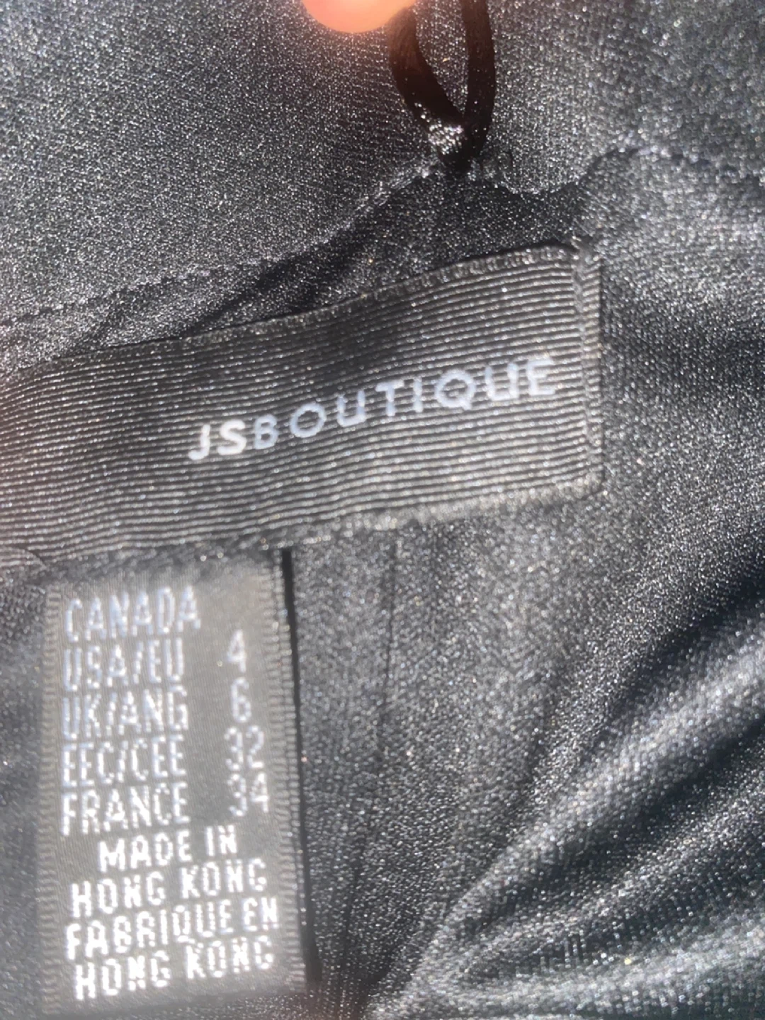 Selling a lovely JS Boutique dress! It's a size 4 and features a beautiful black and gold pattern. Perfect for a special occasion!