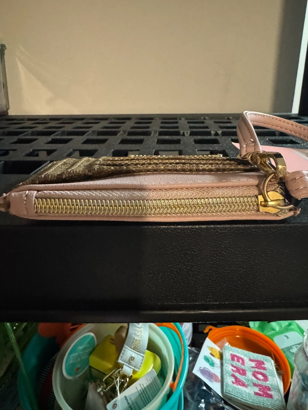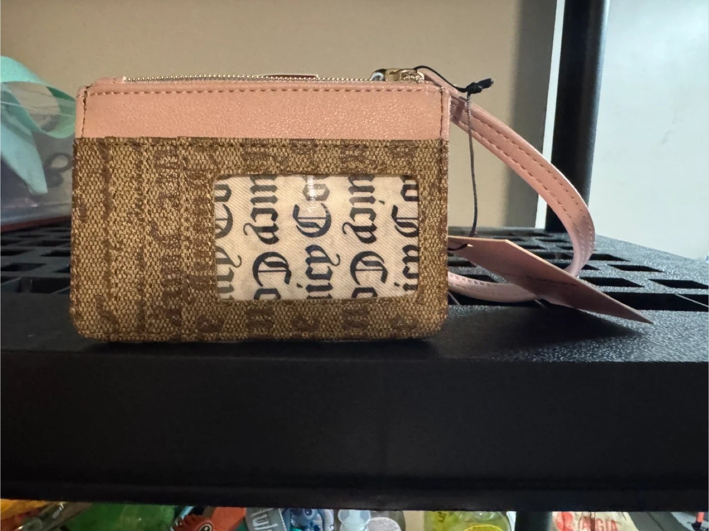 Selling a cute Juicy Couture wallet! It's a brown colour with the Juicy Couture logo pattern. It has a wristlet strap and a clear ID window on the back. Never been used!