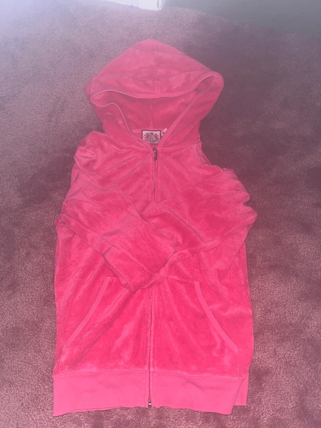 Cozy up in this vibrant pink Juicy Couture velour hoodie! It's a size medium and features the classic Juicy Couture logo. Perfect for adding a pop of colour to your wardrobe and staying comfy at the same time