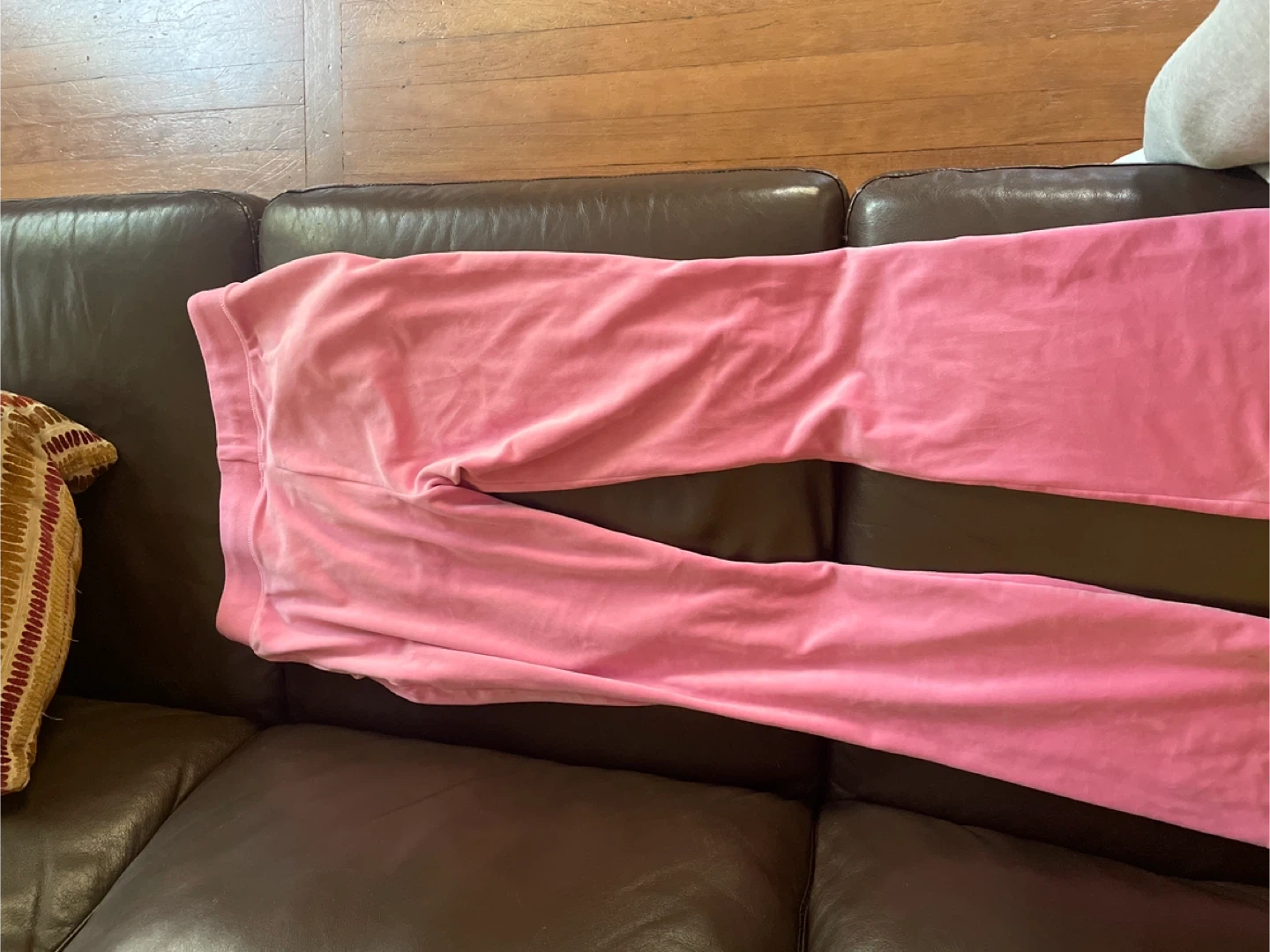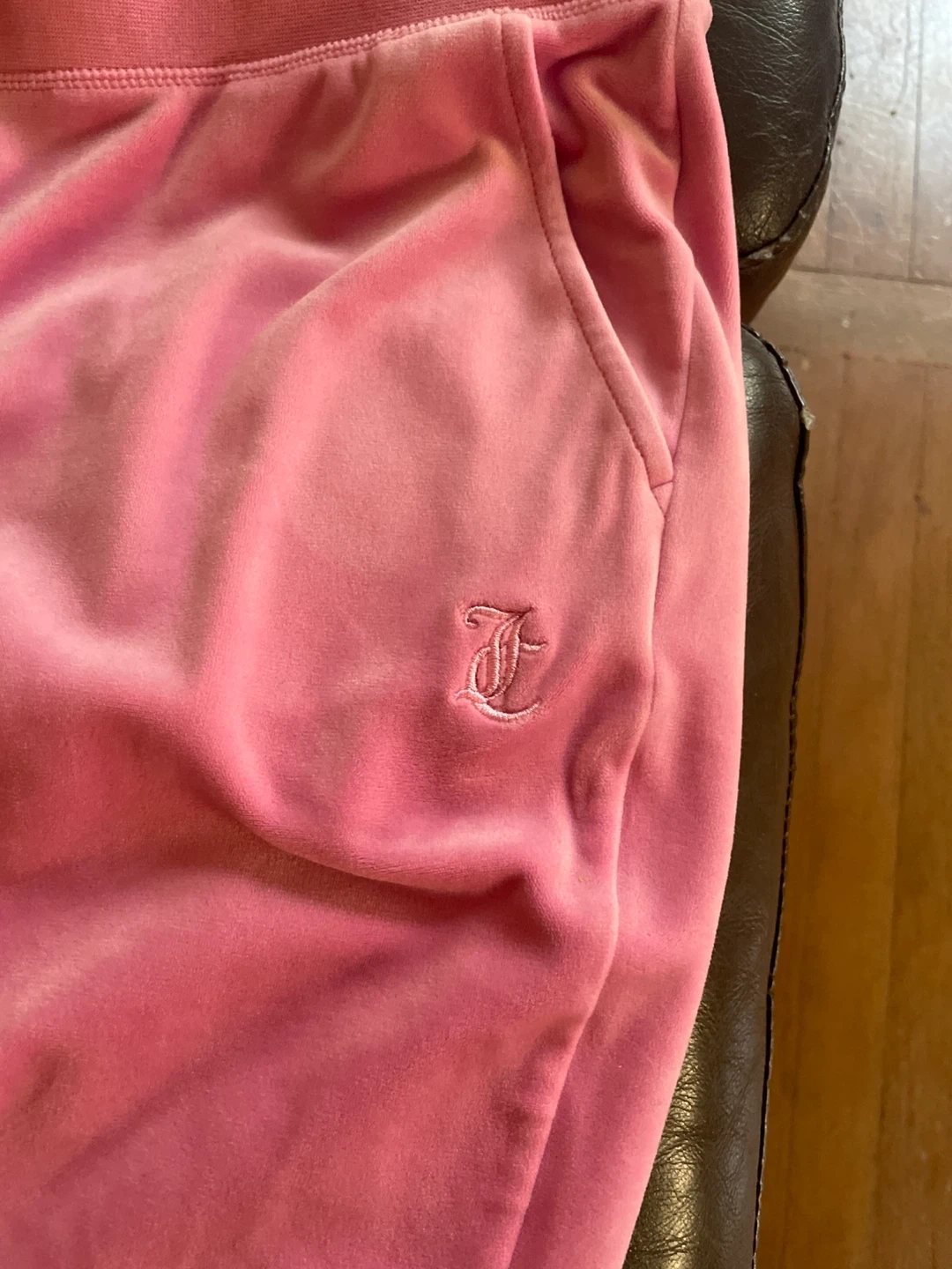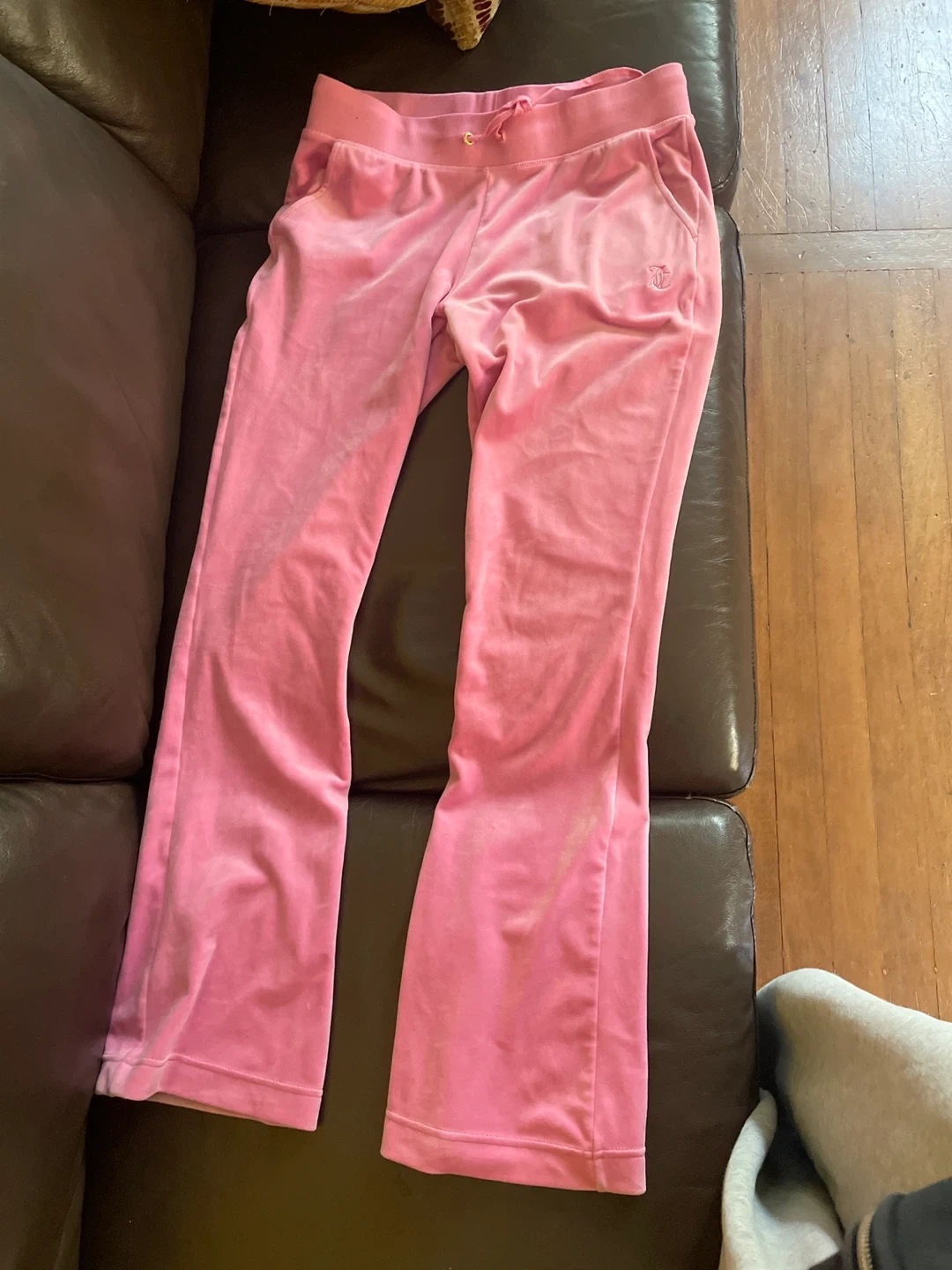 Selling a pair of Juicy Couture Sport velour pants in a lovely pink colour! They're a size medium and have the classic Juicy logo on the pocket. Super comfy and perfect for lounging around or running errands