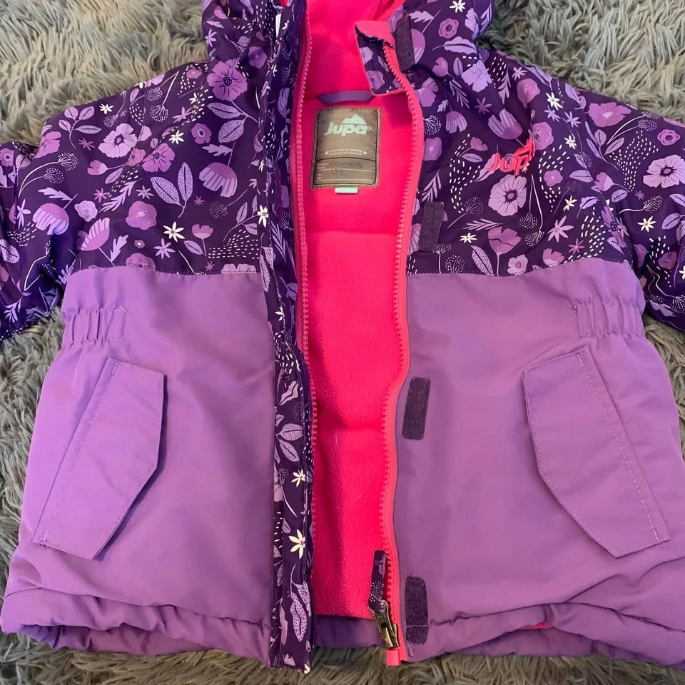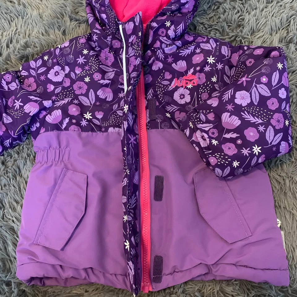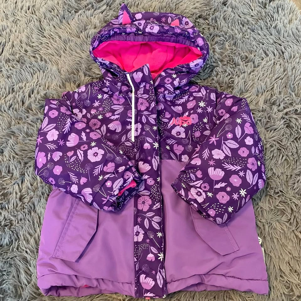 Jupa Kids Girls 3T Winter Hooded Jacket - Kitten Ears, floral purple and pink 95% new In excellent condition. Name written on tag - you can cover it with sticker or rewrite with your kid’s name