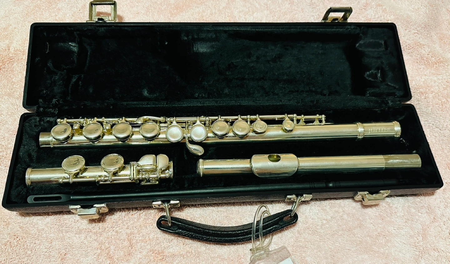 Silver flute in excellent condition. Includes hard case. Ready to play.