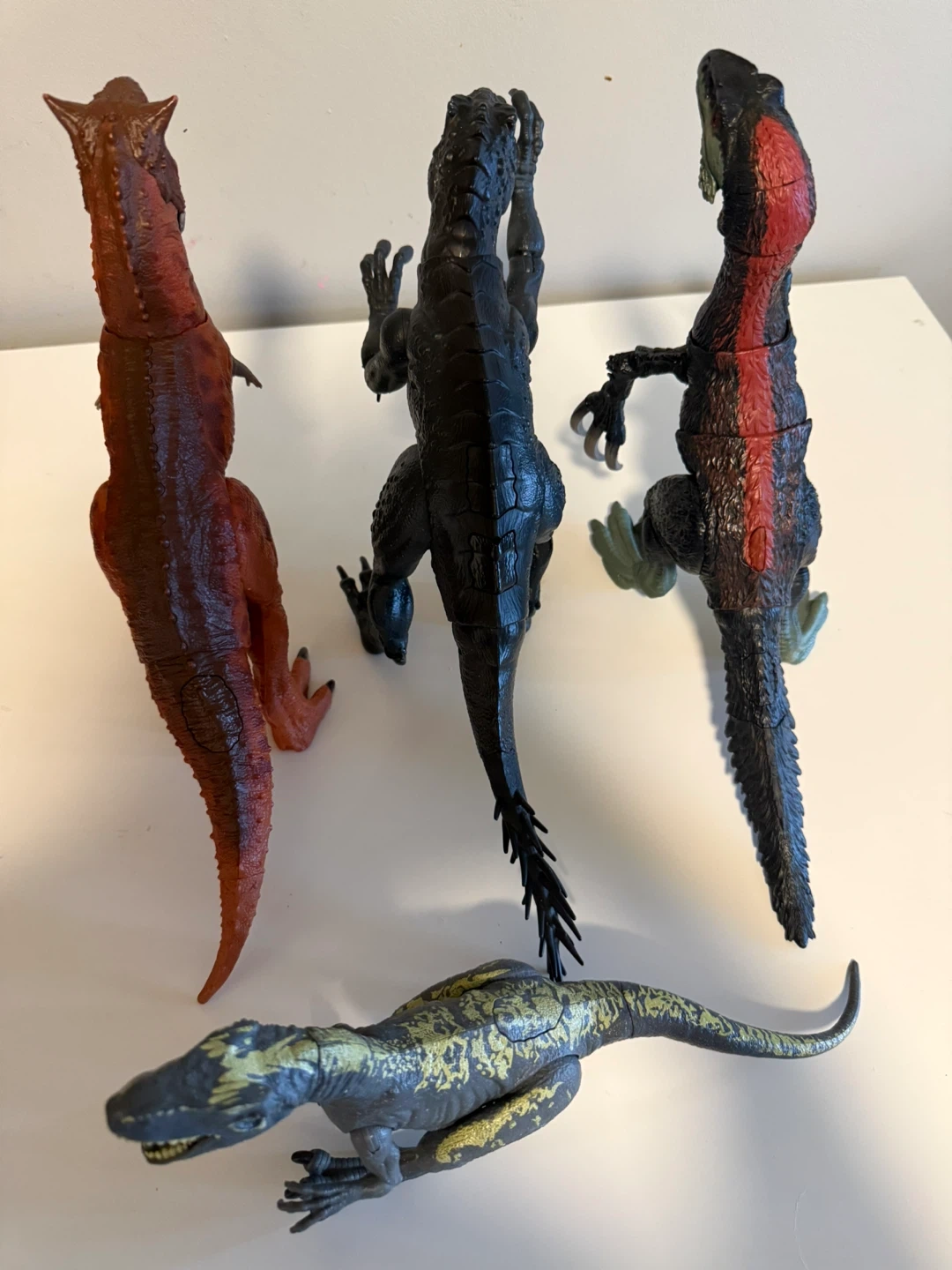 Jurassic World dinosaur figures as a lot. Great shape. All make noises & moves just needs 3 LR44 batteries each Selling lot for 80$ obo Or 20$ each
