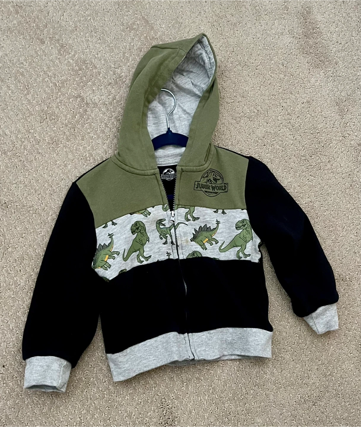 Selling a gently used Jurassic World hoodie in size 3T. It features a cool dinosaur design and is perfect for keeping your little one warm and stylish. The hoodie is in great condition and ready for a new home!