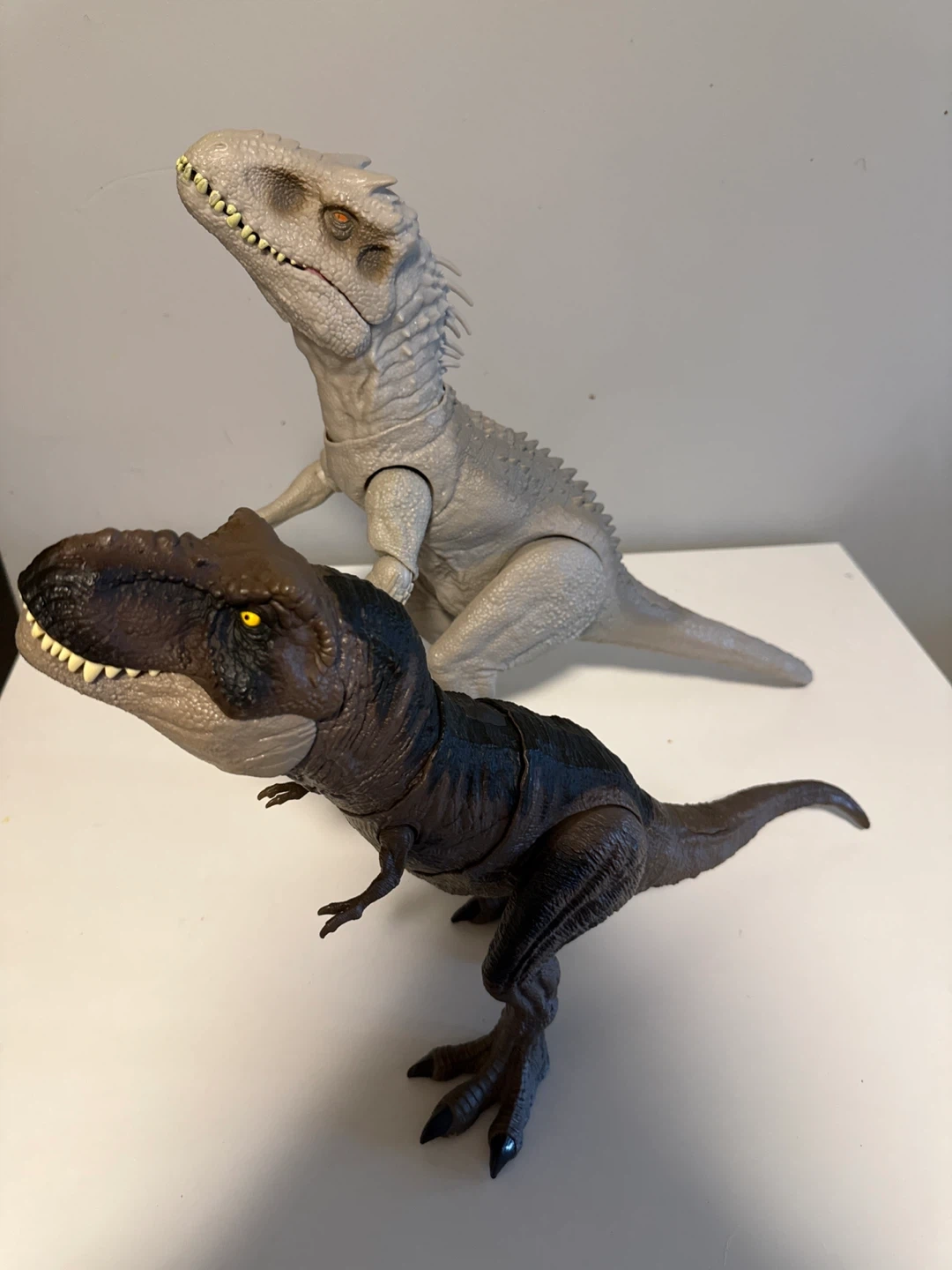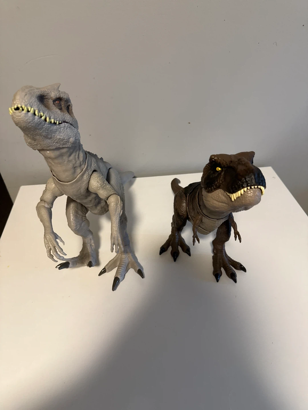 Selling these two Jurassic World dinosaur figures! They are the Indominus Rex and the Tyrannosaurus Rex. Great for any dinosaur fan or collector They make noises and moves just needs 3 LR44 batteries each 60$ for both or 30$ each