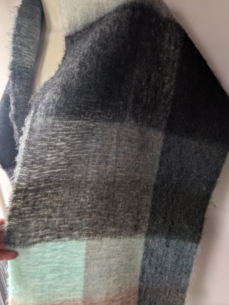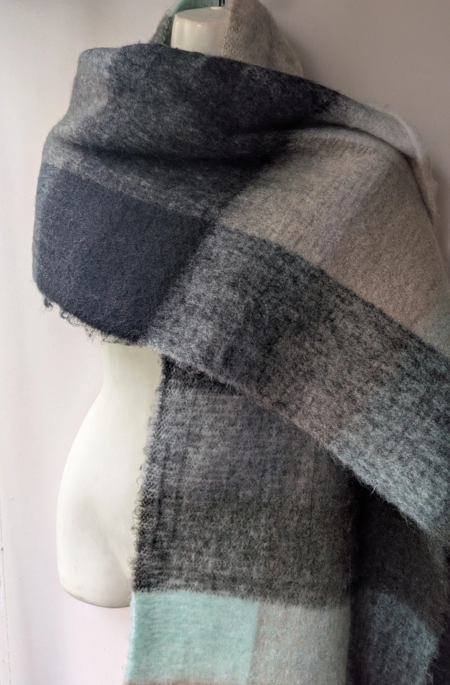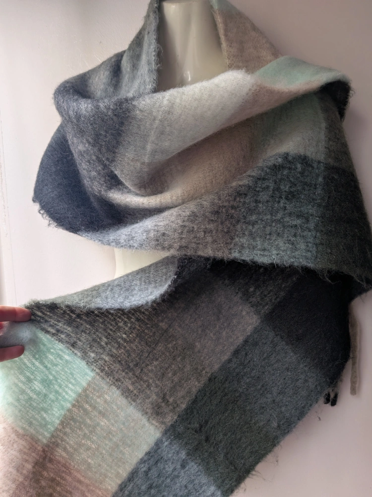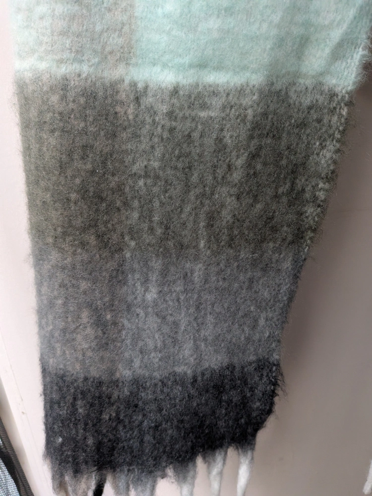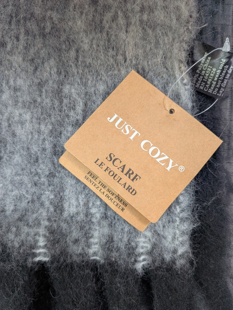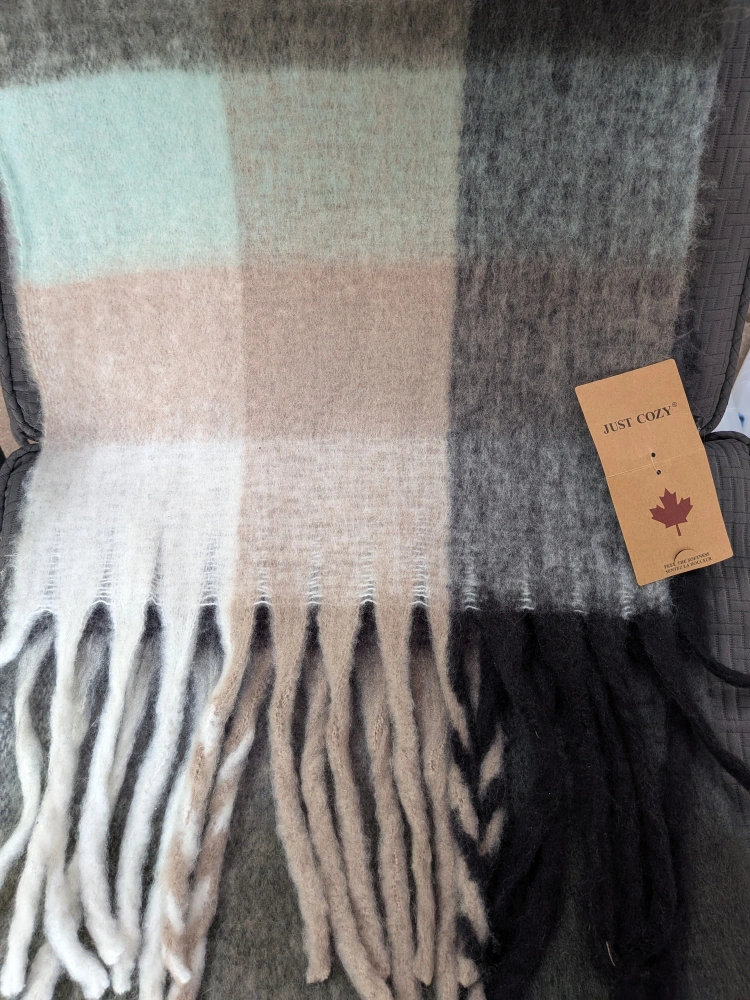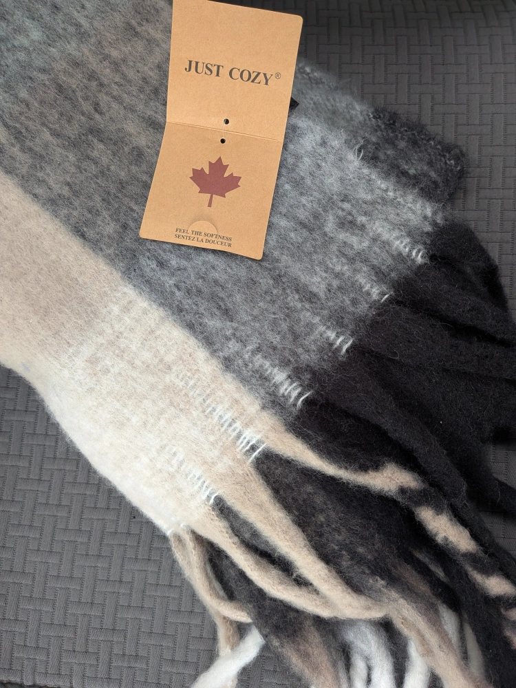 Stay warm and stylish with this cozy Just Cozy scarf! New, not worn with tag. The plaid pattern features a lovely blend of grey, beige, and hints of mint. It's made of 100% polyester, so it's soft and easy to care for. Perfect for adding a touch of warmth and style to any outfit! Cash only, no etransfers Got as a gift, but have too many scarves Location: Etobicoke. Rathburn Rd and Renforth dr. Etobicoke Olympium nearby