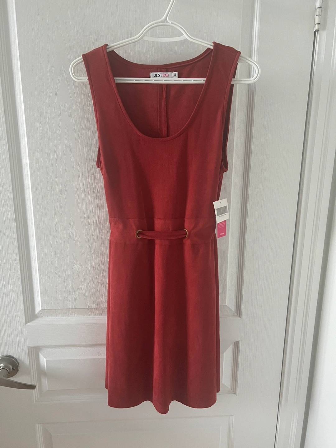 Here's a JustFab dress in a lovely rust colour! It's a size medium and features a sleeveless design. The dress has a tie at the back to cinch the waist. Perfect for a casual day out or dressed up for an evening! Never been worn. Tags still attached. Smoke and pet free home.