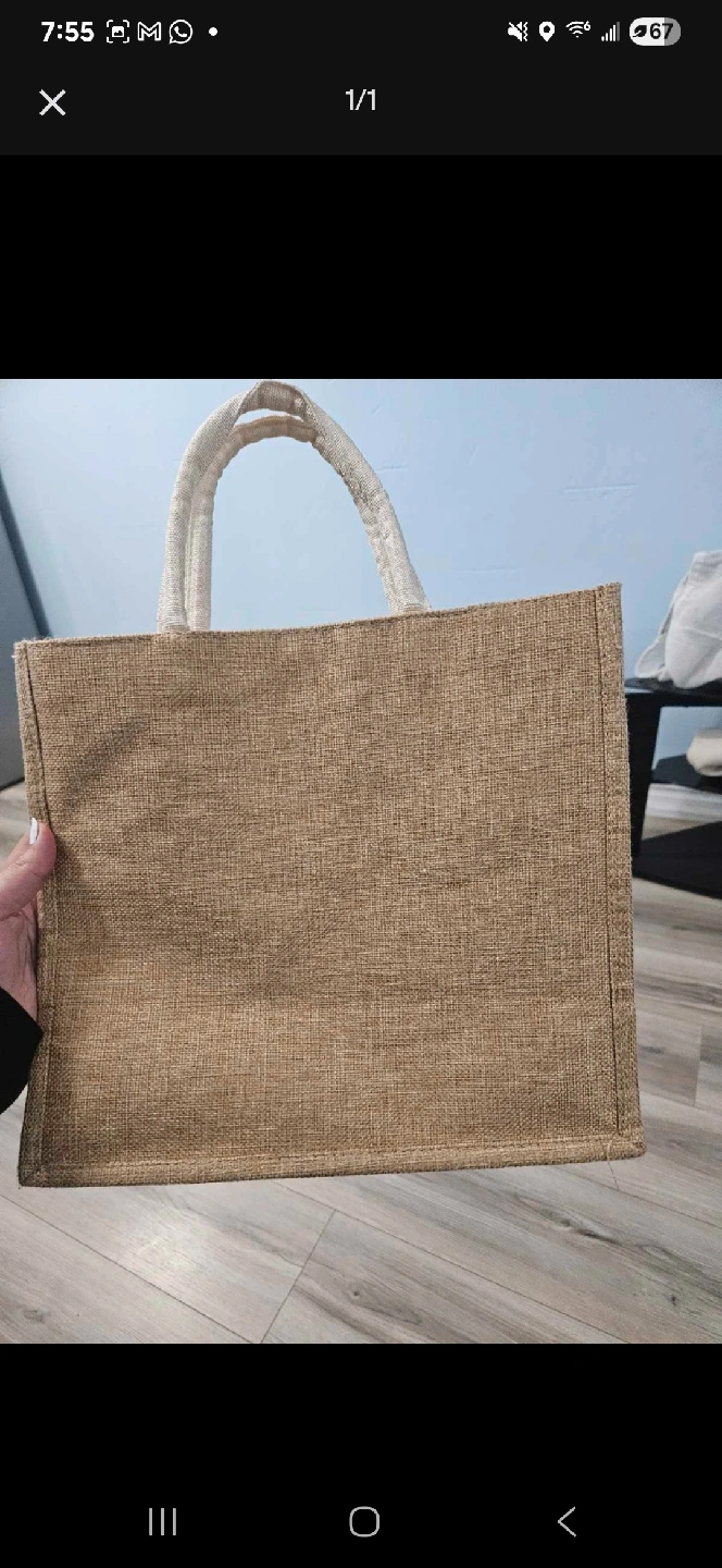 Selling a jute tote bag! It's in great condition and perfect for shopping or carrying items. The neutral colour goes with everything