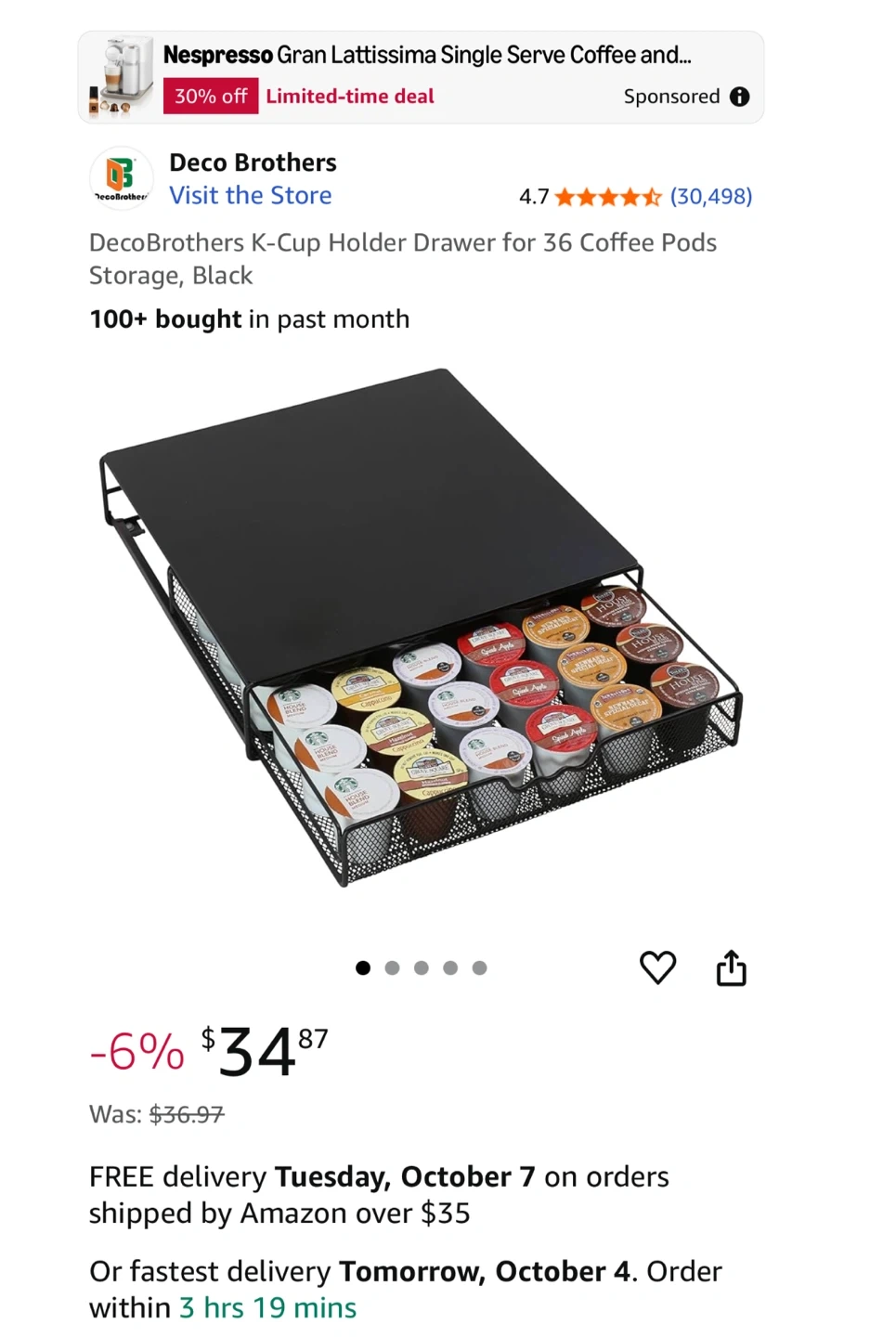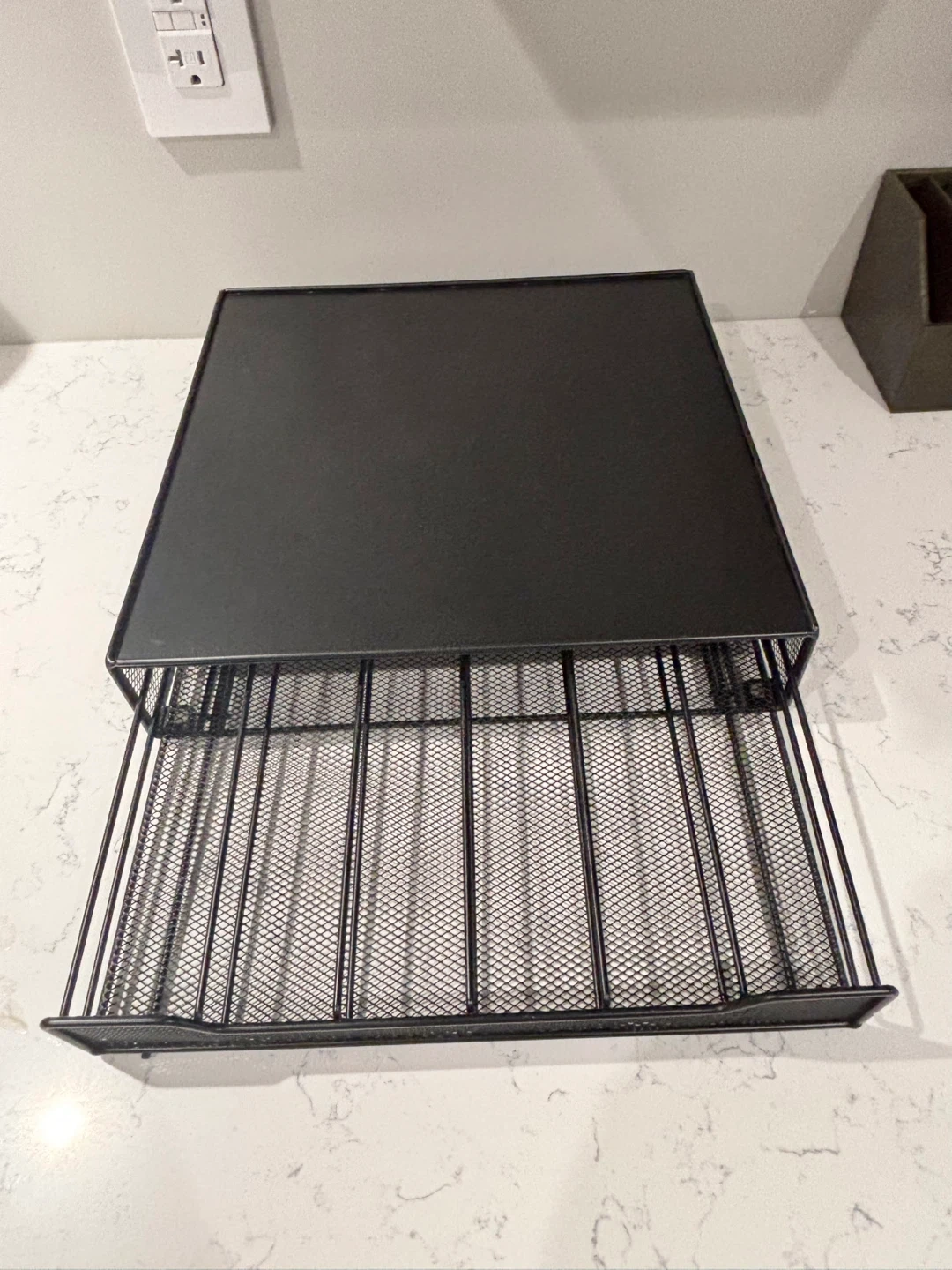 K Cup Holder Drawer for 36 Coffee Pods Storage, Black Clean and in great condition Keep your coffee pods organized with this Deco Brothers K-Cup holder drawer! It's designed to hold 36 coffee pods and has a sleek black finish. Originally bought for $37+tax 12.5” by 12.5” and 2.5” height