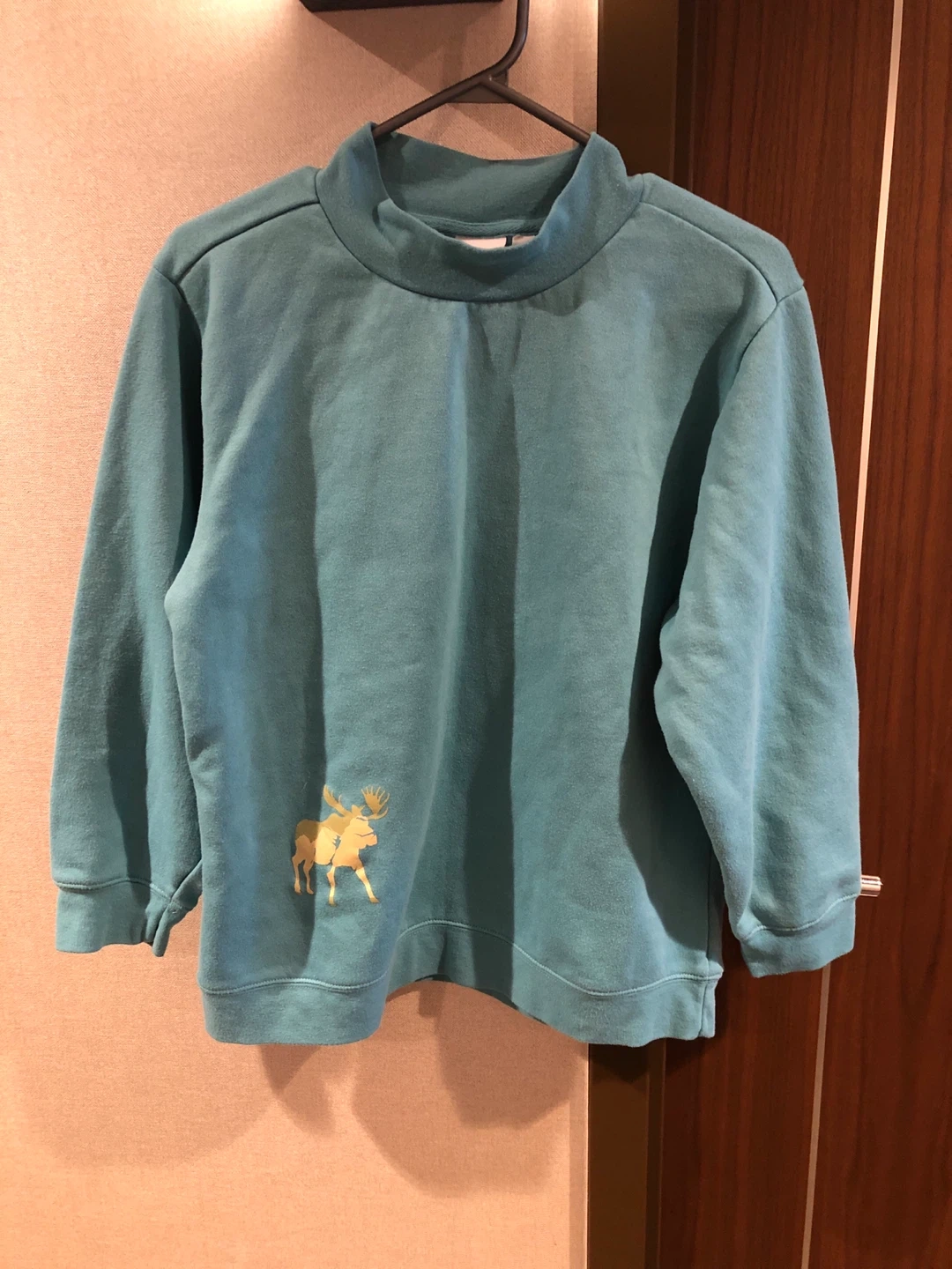 Cozy teal sweatshirt from K&L Toronto! It's a size M and features a cool moose design. Perfect for staying warm and comfy. Downtown pick up Cash only