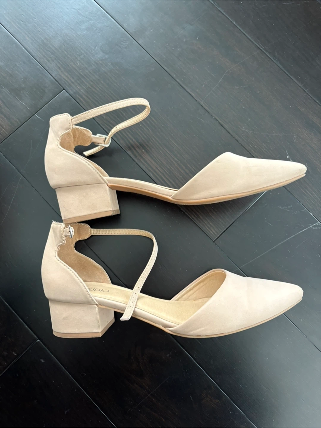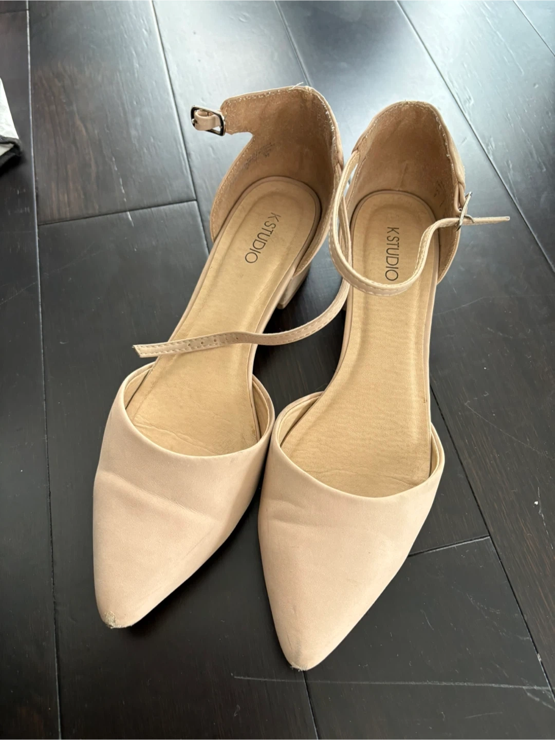 These K Studio heels are a beautiful beige colour and feature a stylish ankle strap. They're in great condition and ready for a new home! Size 8