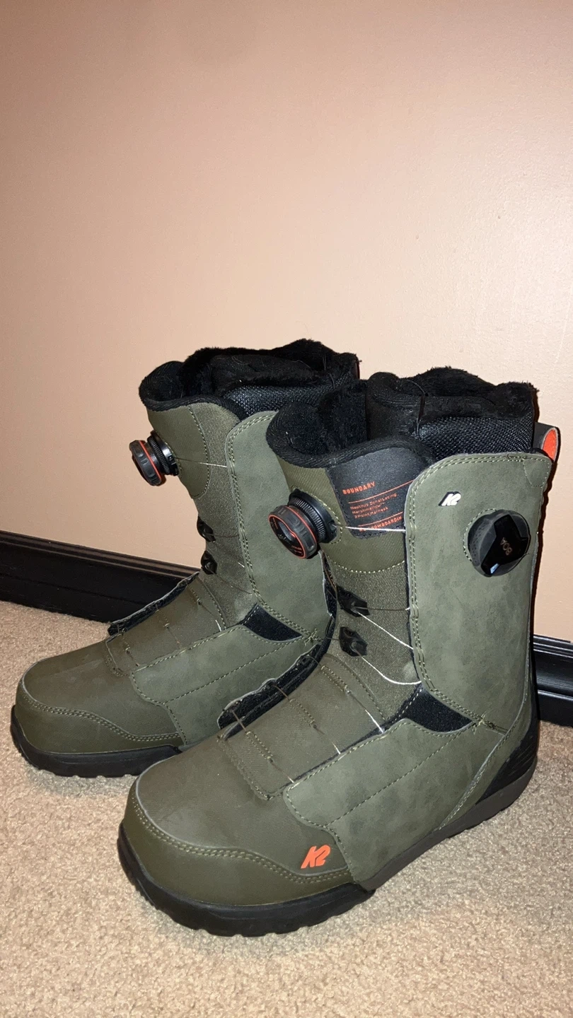 Selling a pair of K2 Boundary men's snowboard boots in size 11 US. These boots feature Intuition Control Foam for a comfortable fit and a BOA system for easy adjustments. The color is a stylish olive green. Almost brand new, no scratches, holes, tears, rips or any damage Location: Leduc but can deliver past Edmonton for a small fee