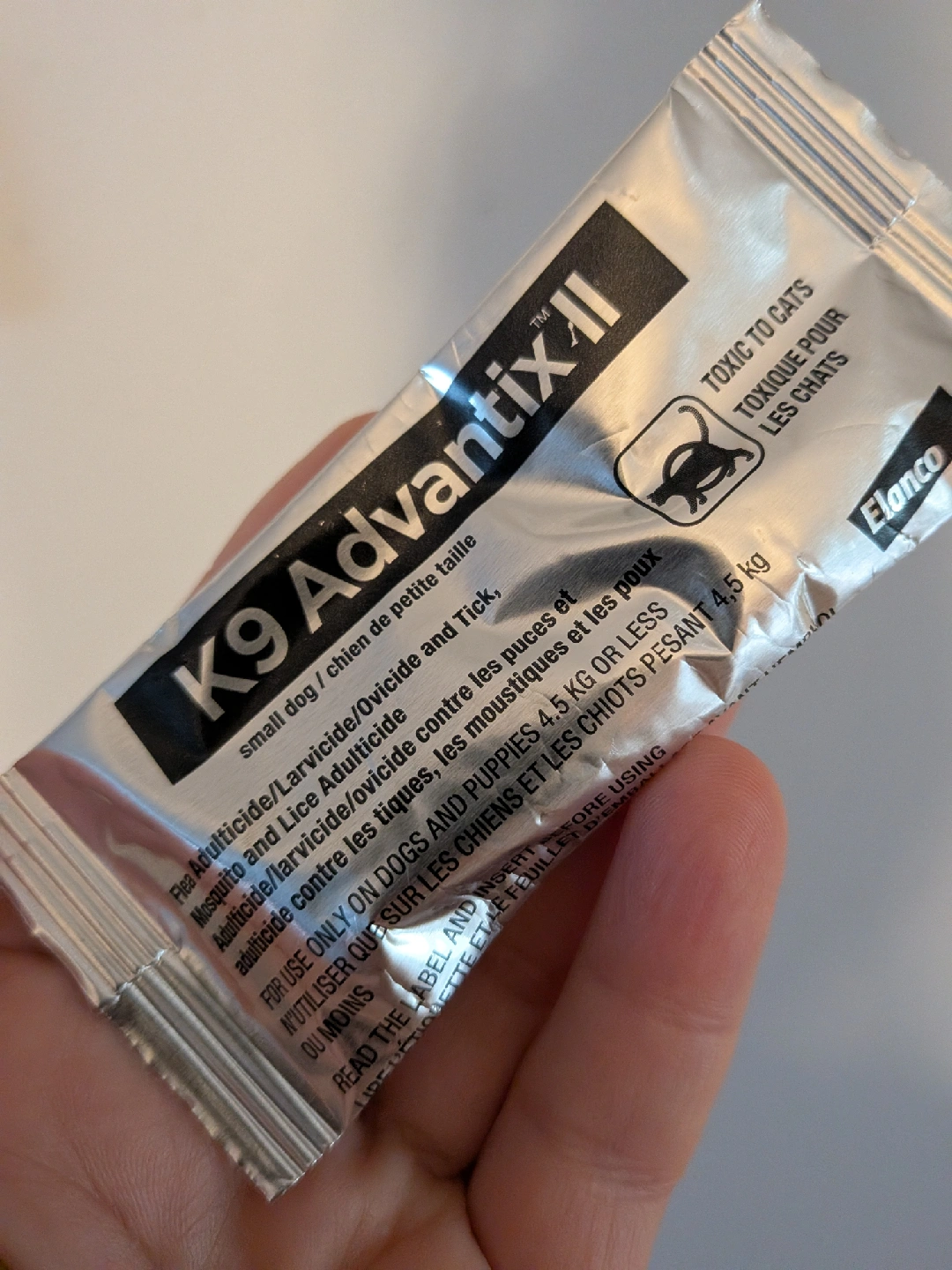 Selling a single dose of K9 Advantix II flea and tick treatment for small dogs (under 4.5 kg). Date issued 2024. It's a flea adulticide, larvicide, and ovicide, effective against mosquitoes and lice. ** Please note this product is TOXIC FOR CATS* *Cash only, no etransfers Meet upvLocation: Etobicoke. Rathburn Rd and Renforth dr. Etobicoke Olympium nearby No holds, first come