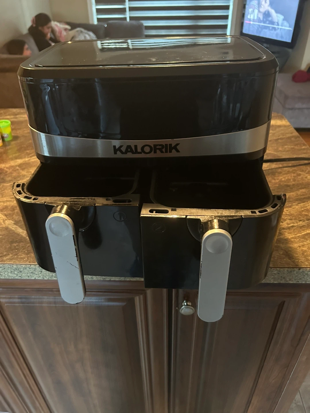 Selling a Kalorik double basket air fryer. It's in great condition and ready for a new home! Perfect for making quick and easy meals for the whole family